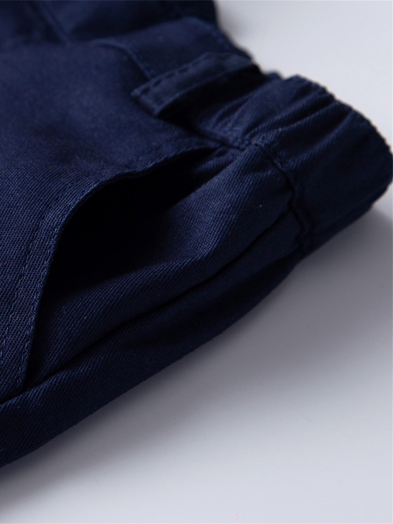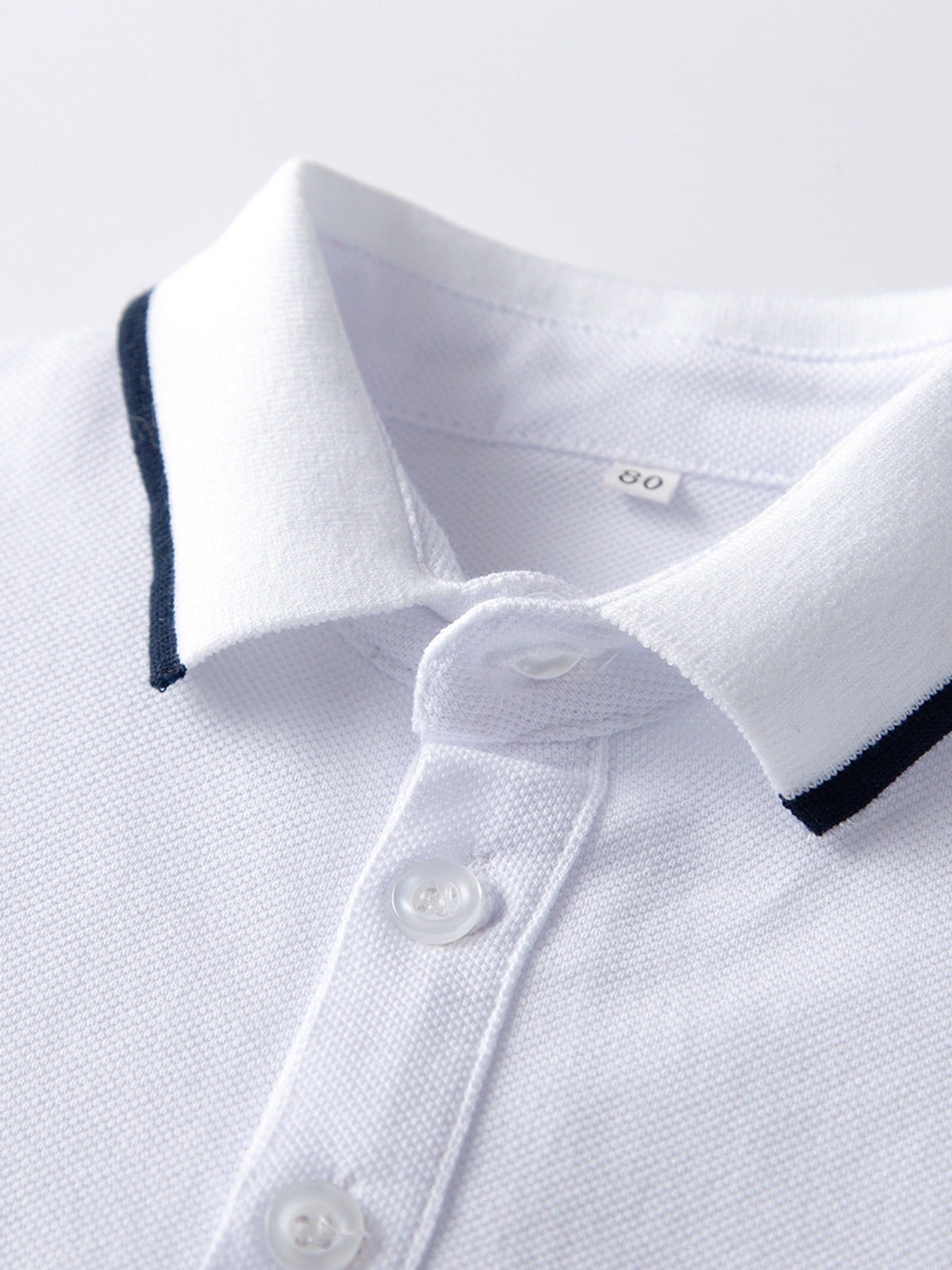 Boys' Summer Set - Casual White Short Sleeve Romper with Navy Blue Collar & Matching Shorts, Easy-Care Polyester, Perfect for Spring/Autumn, Spring Youngsters Outfit|Classic Style|Polyester Blend Outfit, Perfect for Outdoor