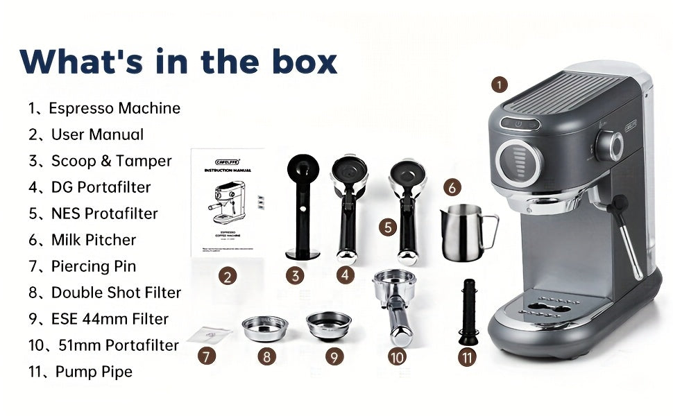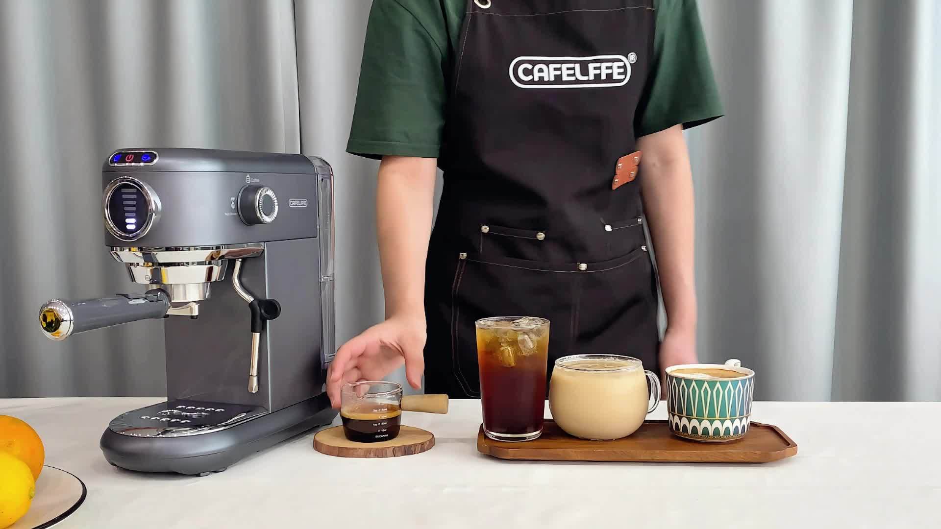 CAFELFFE Cold/Hot Semi-Automatic Espresso Machine, Stainless Steel Multi-Function Latte & Cappuccino Maker with Built-in Milk Frother/Steam Wand, Upgraded 7-Level Water Volume Control, Compatible with Ground Coffee & ESE Pods