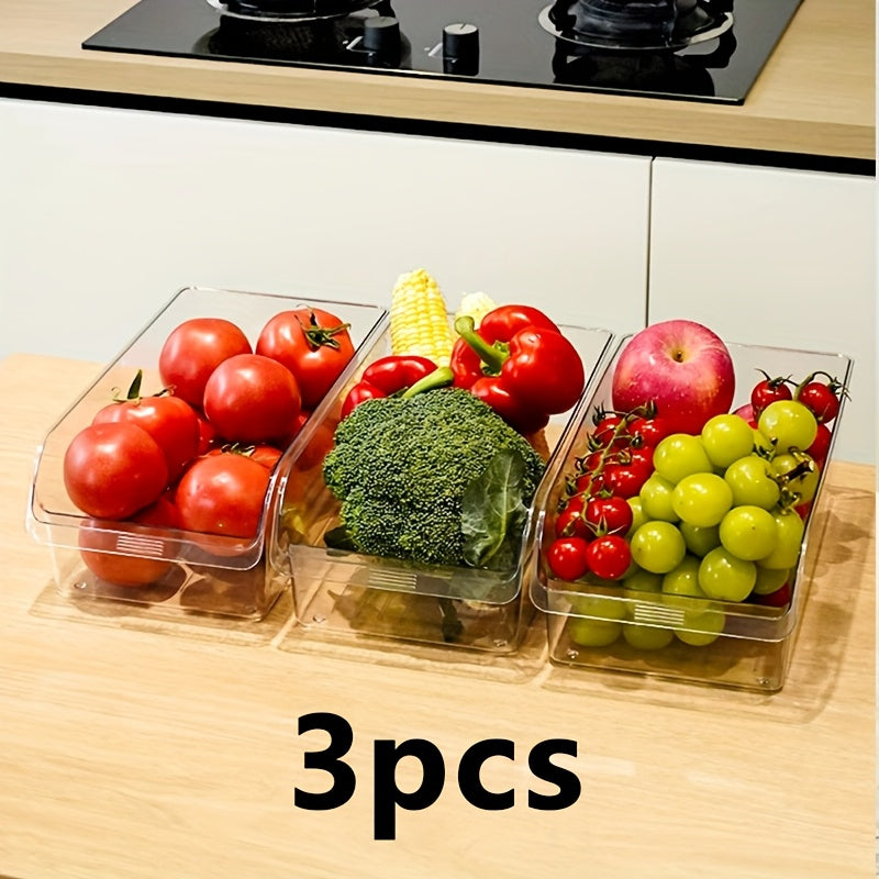 Mantenha o seu frigorífico e cozinha sempre organizados com o Conjunto de 3 Caixas de Armazenamento Transparentes. Fabricadas em material PET resistente e de alta qualidade, estas caixas empilháveis oferecem grande capacidade para guardar frutas, snacks, produtos secos ou até cosméticos.