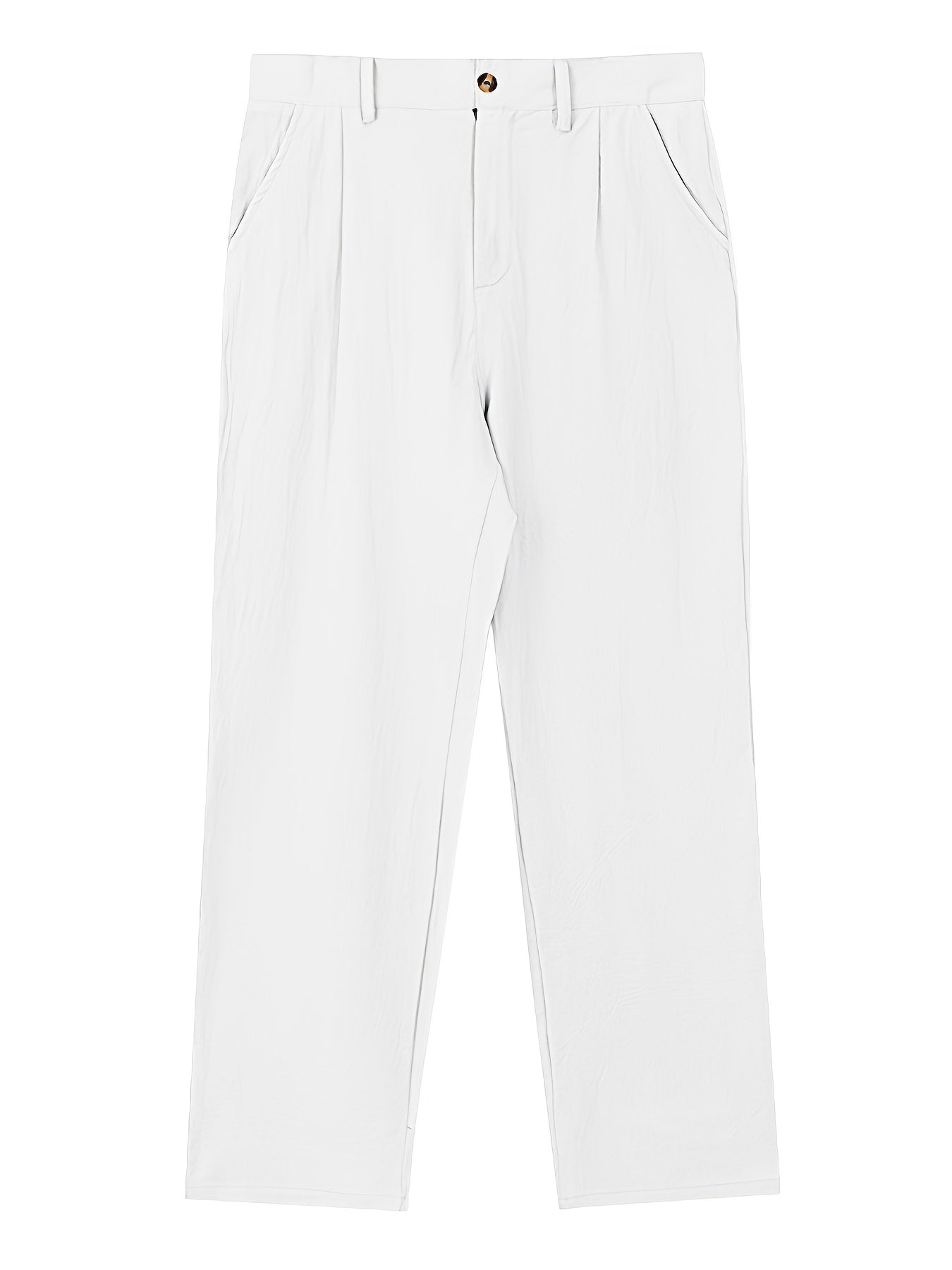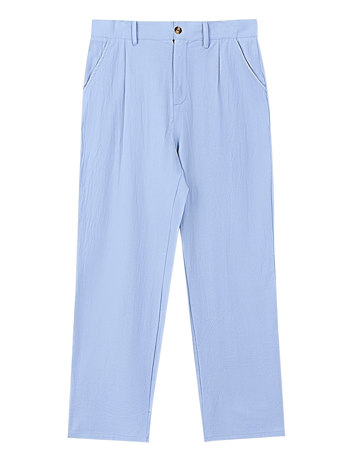 Feitas em tecido de linho não elástico, combinam conforto, respirabilidade e durabilidade, mantendo o visual impecável durante todo o dia. O design de perna reta clássica oferece um caimento moderno e profissional, adequado a todas as estações.