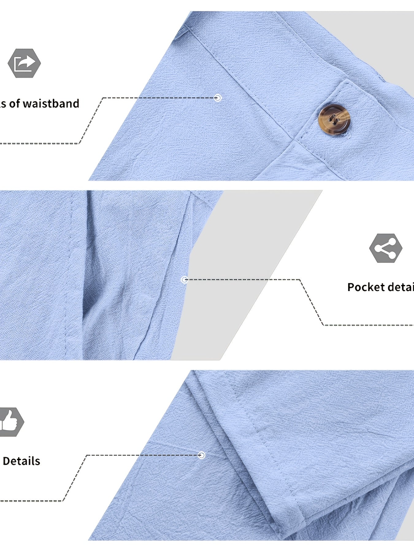 - Tecido: Linho não elástico, respirável e leve