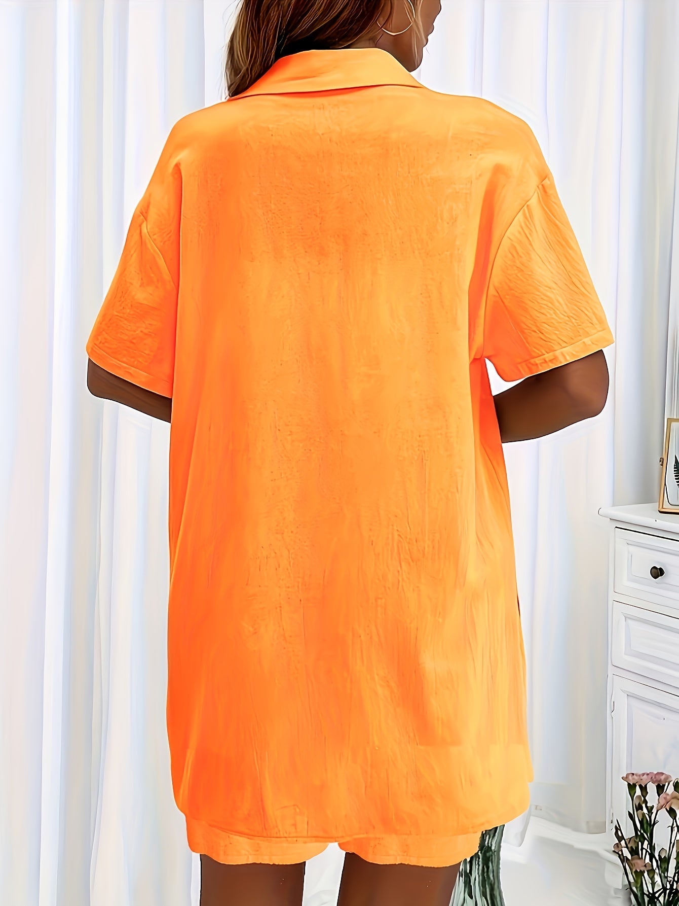Casual Matching Two-piece Set, Short Sleeve Blouse & Drawstring Shorts Outfits, Women's Clothing