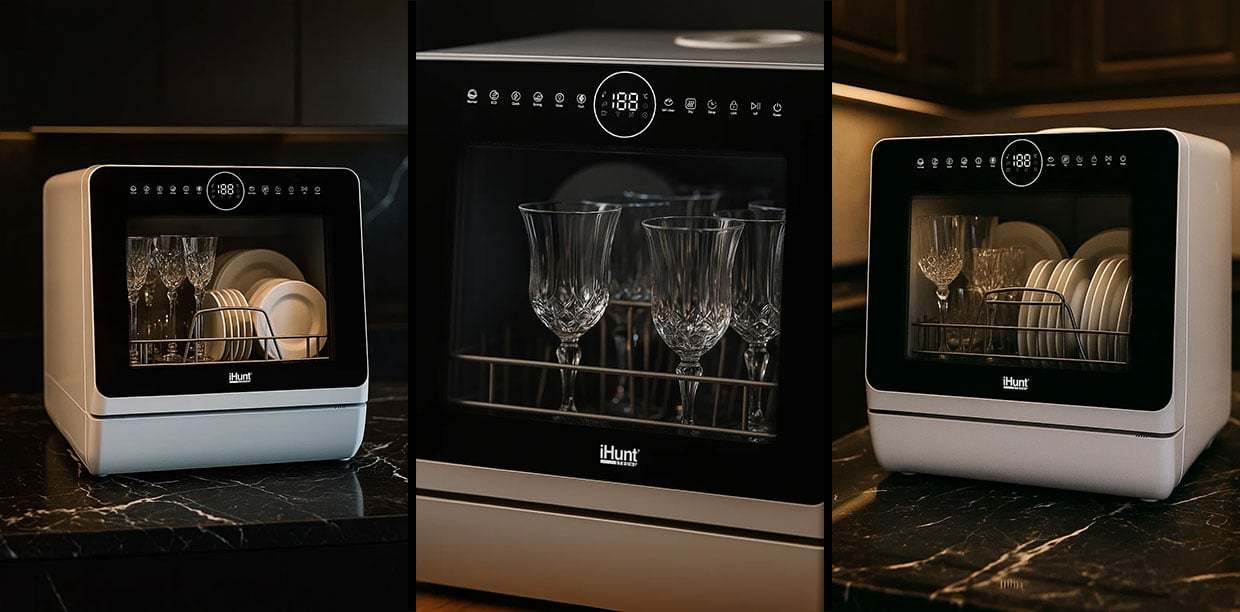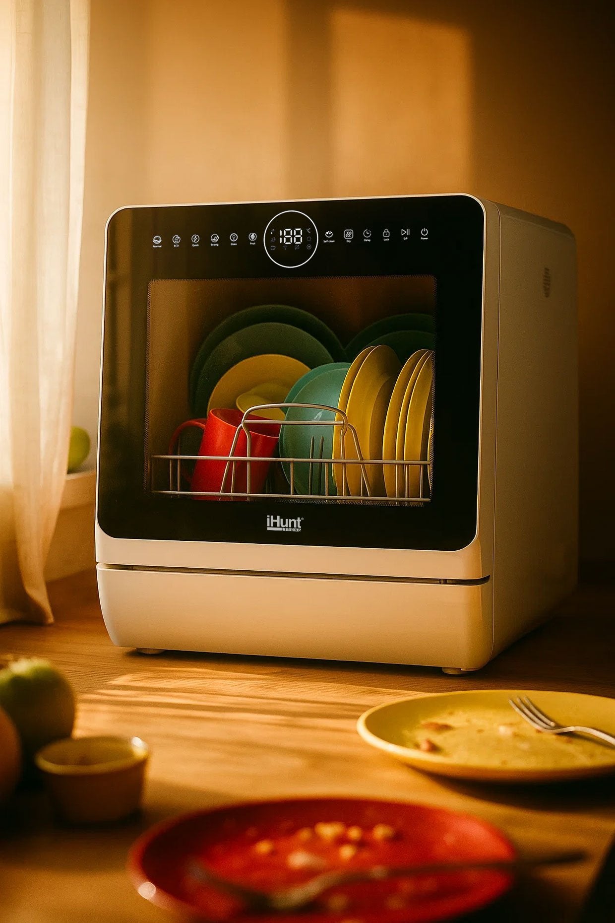 Compact Ihunt Bro Dishwasher Xpert, Turbo Clean, 950W, Drain Pump, Digital Control, Class B, 6 Programs, Heating / Drying, Water Supply Tap / Manual, 5L Water Reserve, 45Cm, White