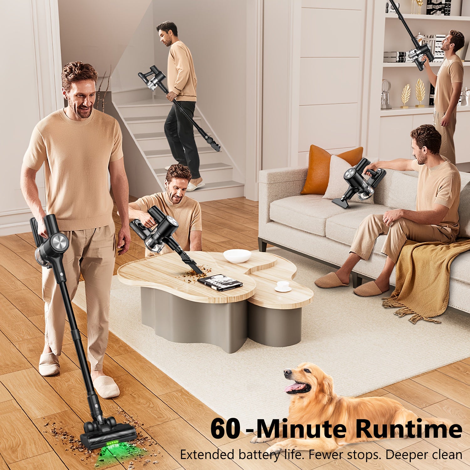 Cordless Vacuum Cleaner, Lightweight Powerful Stick Vacuum Cleaner, 60 Mins Runtime, Self-Standing, Stick Vacuum With Charging Dock Station, Upgraded Green Light&Anti-Tangle FloorBrush, Handheld Vacuum For Pet Hair/Carpet/Flo