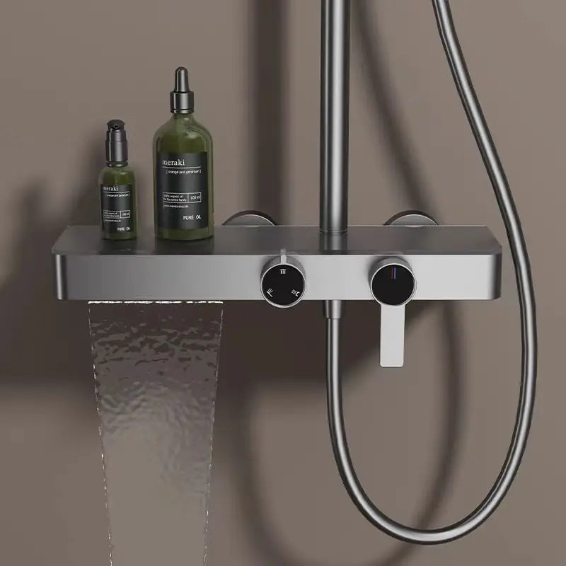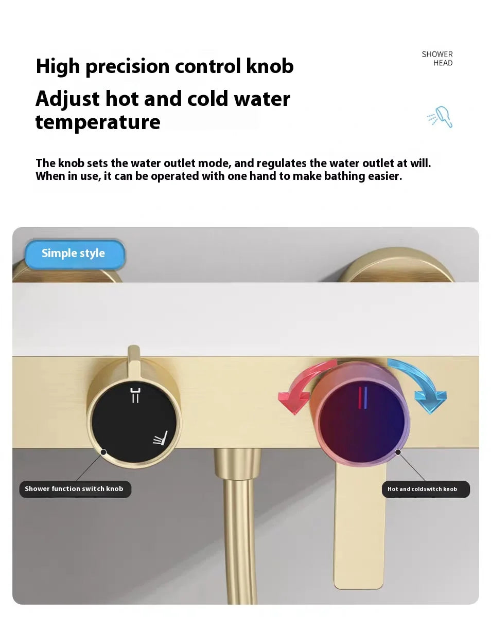 Cross-Border Household Toilet Large Waterfall Water Outlet ABS Chrome Soft Hot Cold Copper Brushed Gold Shower Suit Storage