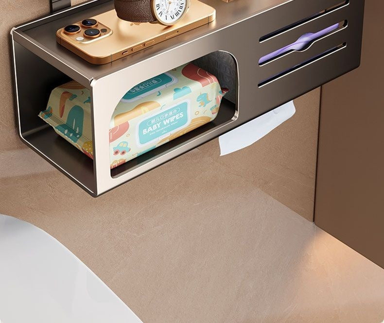 CYCY Wall-Mounted Bathroom Tissue Box Holder with Suction Cup Installation - Space-Saving Square Design, Durable Carbon Steel, Holds Multiple Rolls, Ideal for Toilet Paper & Face Towels, Modern Minimalist Style, Toilet Paper