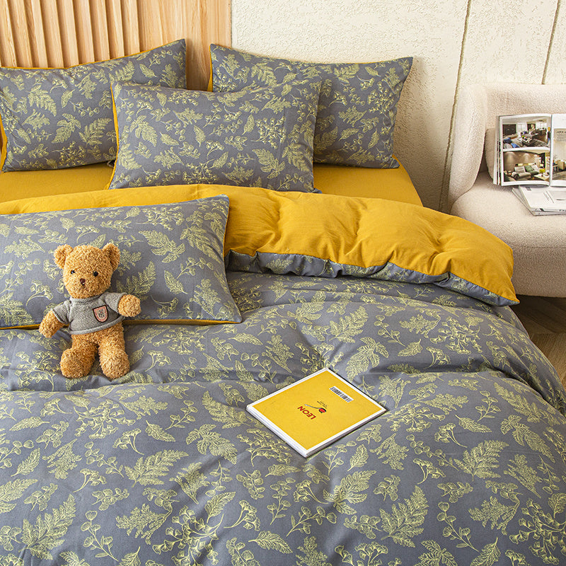 Dark Vine Pattern 4-Piece Vintage Small Floral Bedding Set. Includes 1 flat sheet, 1 duvet cover, and 2 pillowcases. Machine washable polyester. Breathable and easy to clean. Does not contain down duvet or pillowcases.
