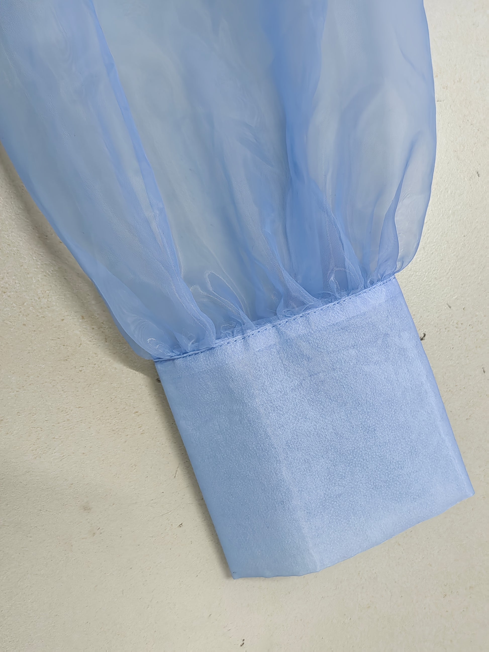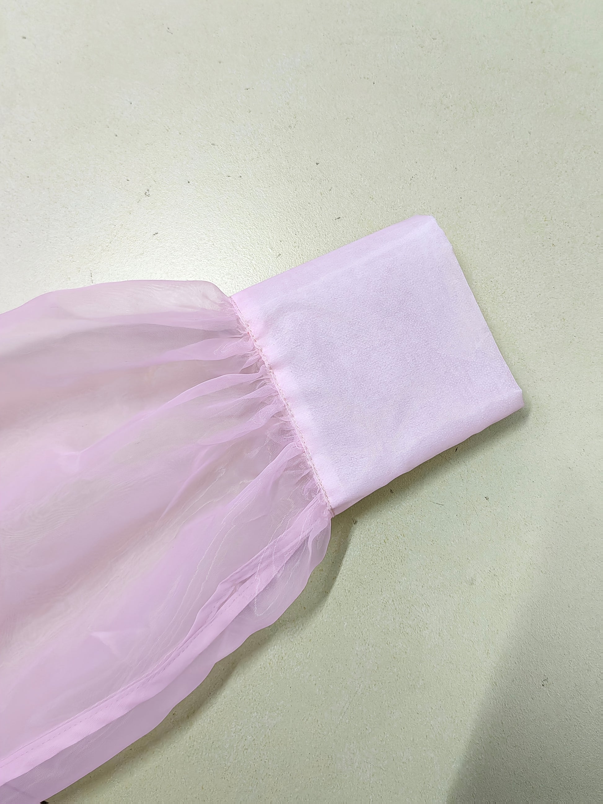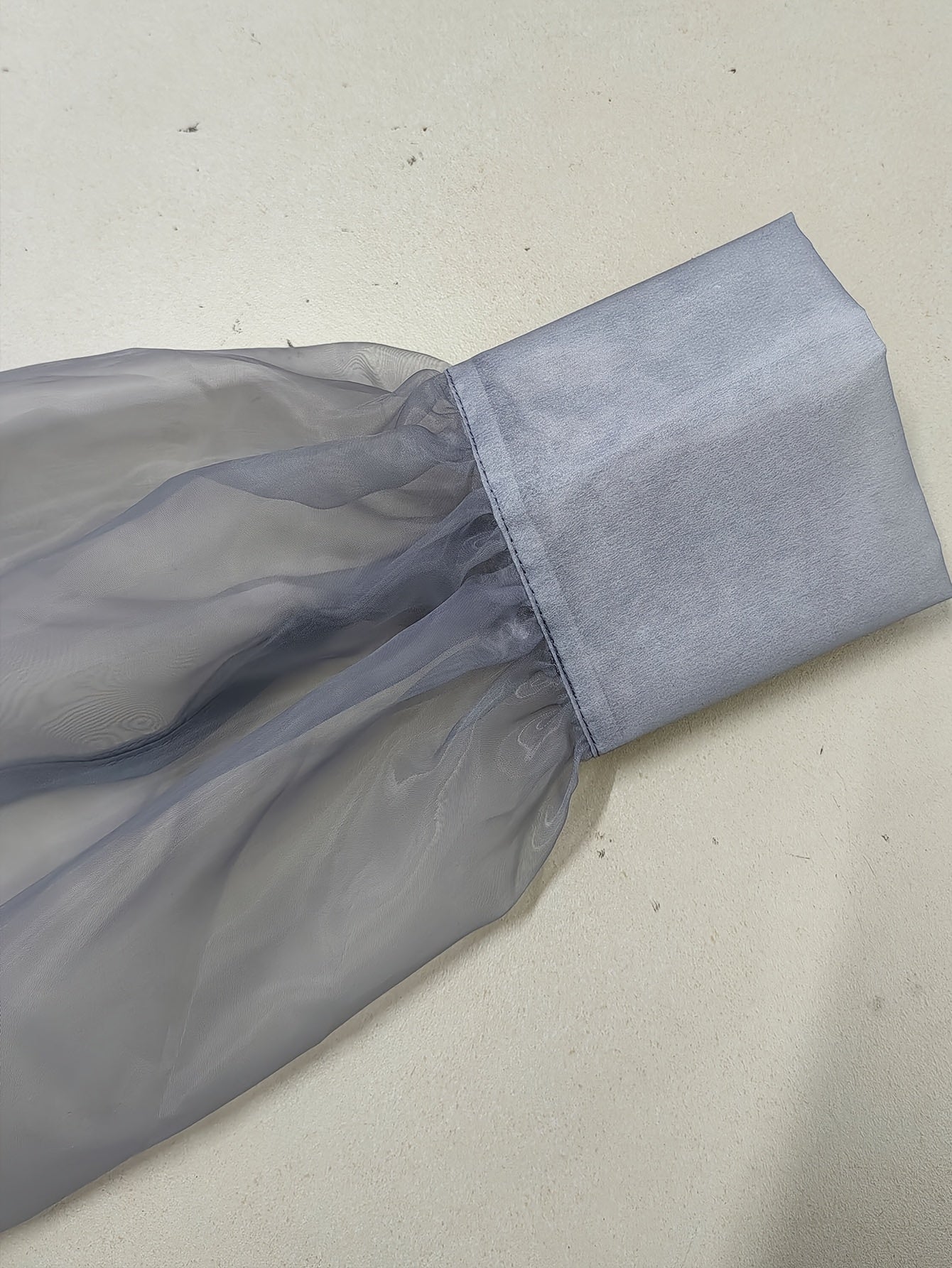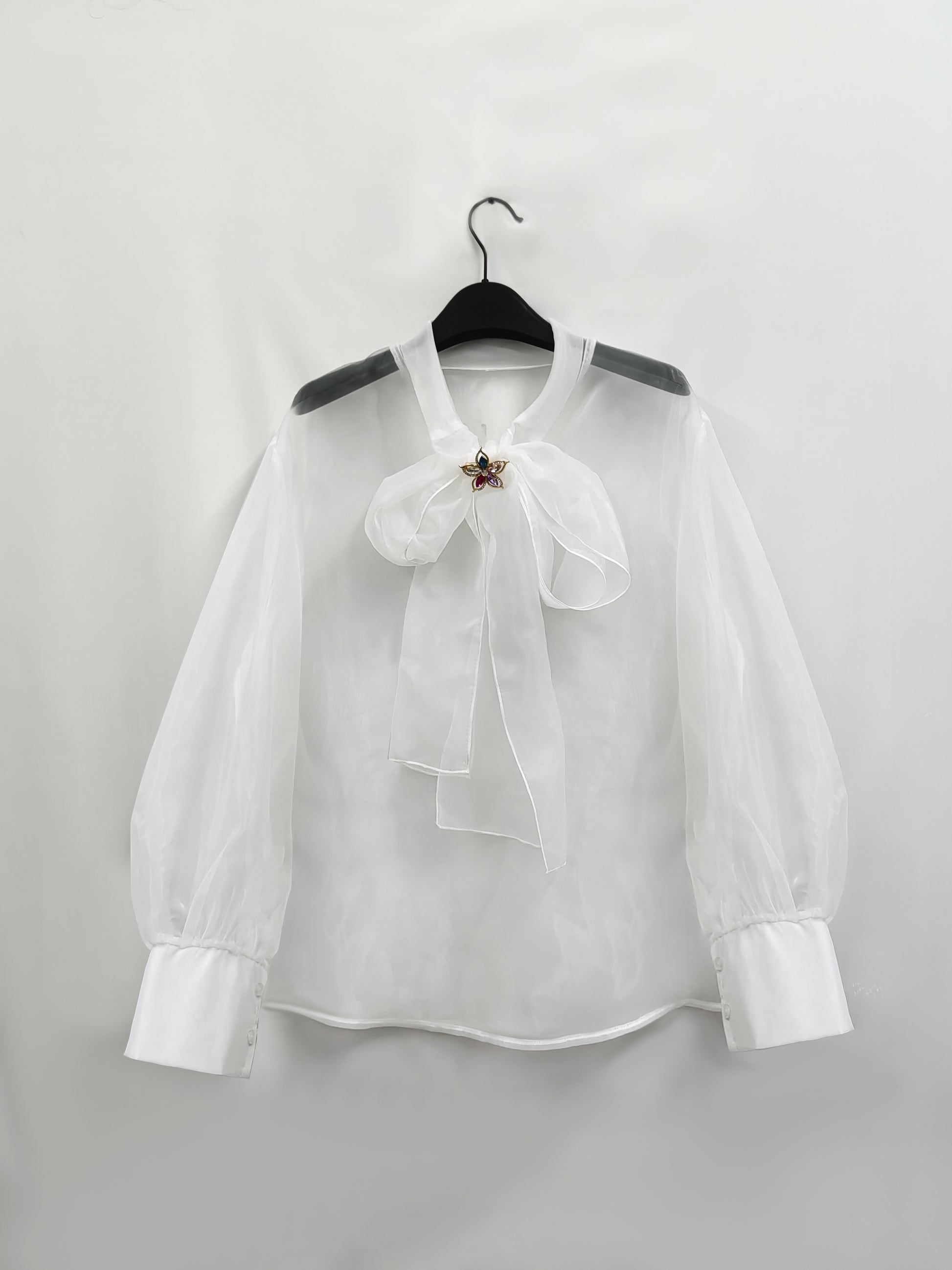 Elegant Plus Size Women'S Blouse with Sexy Bow Collar, Bubble Sleeves, and Pearl Accents - Chic Solid Color Non-Stretch Fabric for All Seasons, Plus Size Blouses