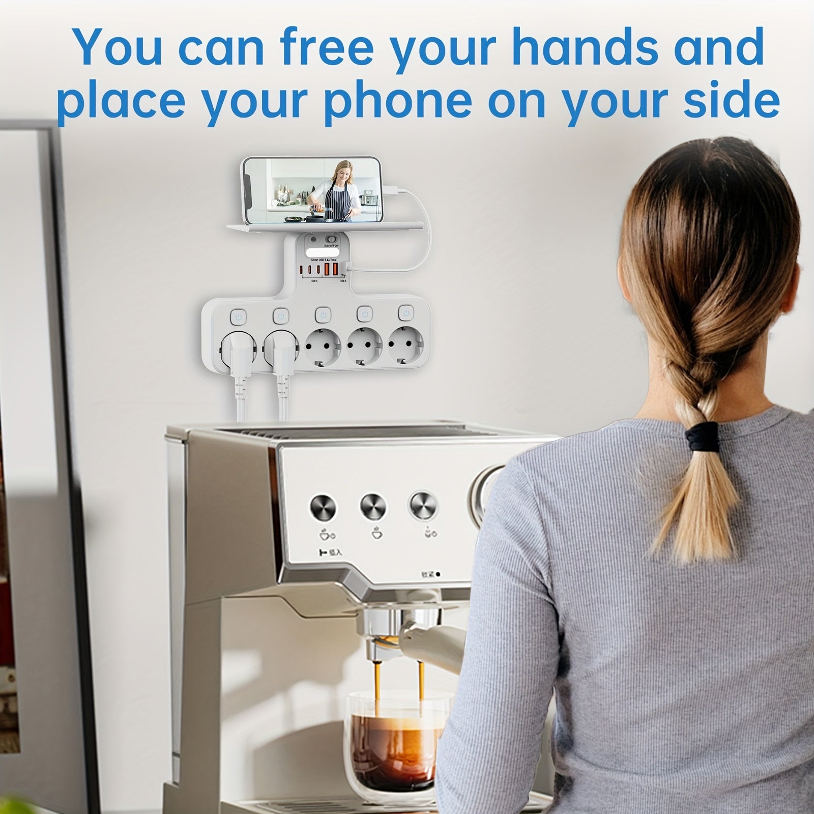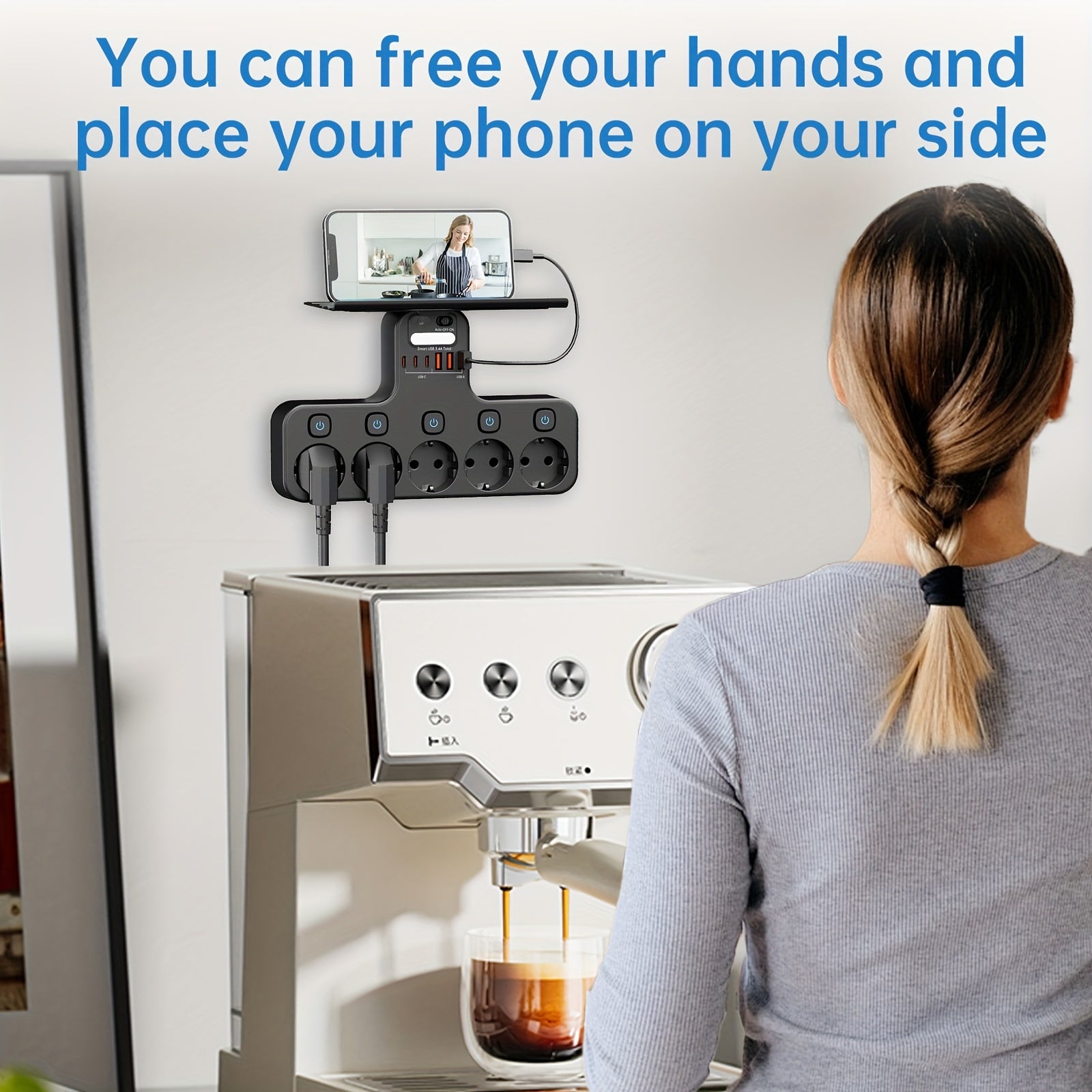 European 5-Pin Socket Extension with 3 USB-A and 3 USB-C Ports, Overload Protection, Smart Light Sensor, 4000W, 16A, Ideal for Home, Outdoor, and Office Use, Outdoor Power Supply, Modern Power Outlet, Durable Power Outlet