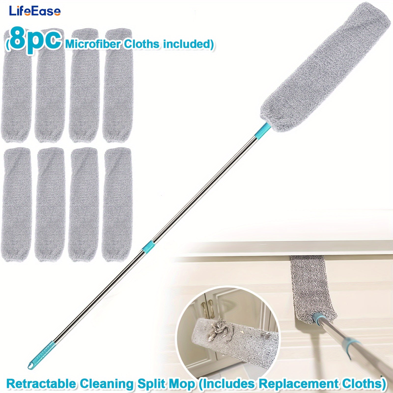 Extended Retractable Dusting Split Mop with 4/6/8/12 Microfiber Dusting Cloths, Underbed Cleaning, for sweeping dust, wiping crevices of sofas, Extended mop for mopping under beds, home cleaning, cleaning tools for the school