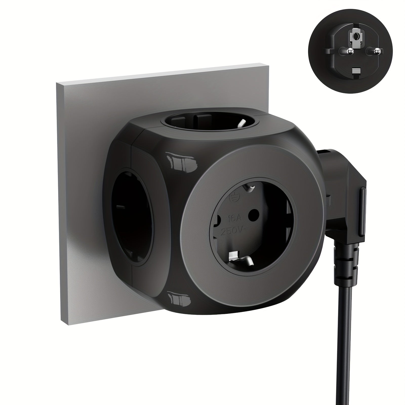 Five-in-one multi-socket cube wall plug, standard European 5 European sockets, multi-socket three-dimensional, suitable for office, home, travel