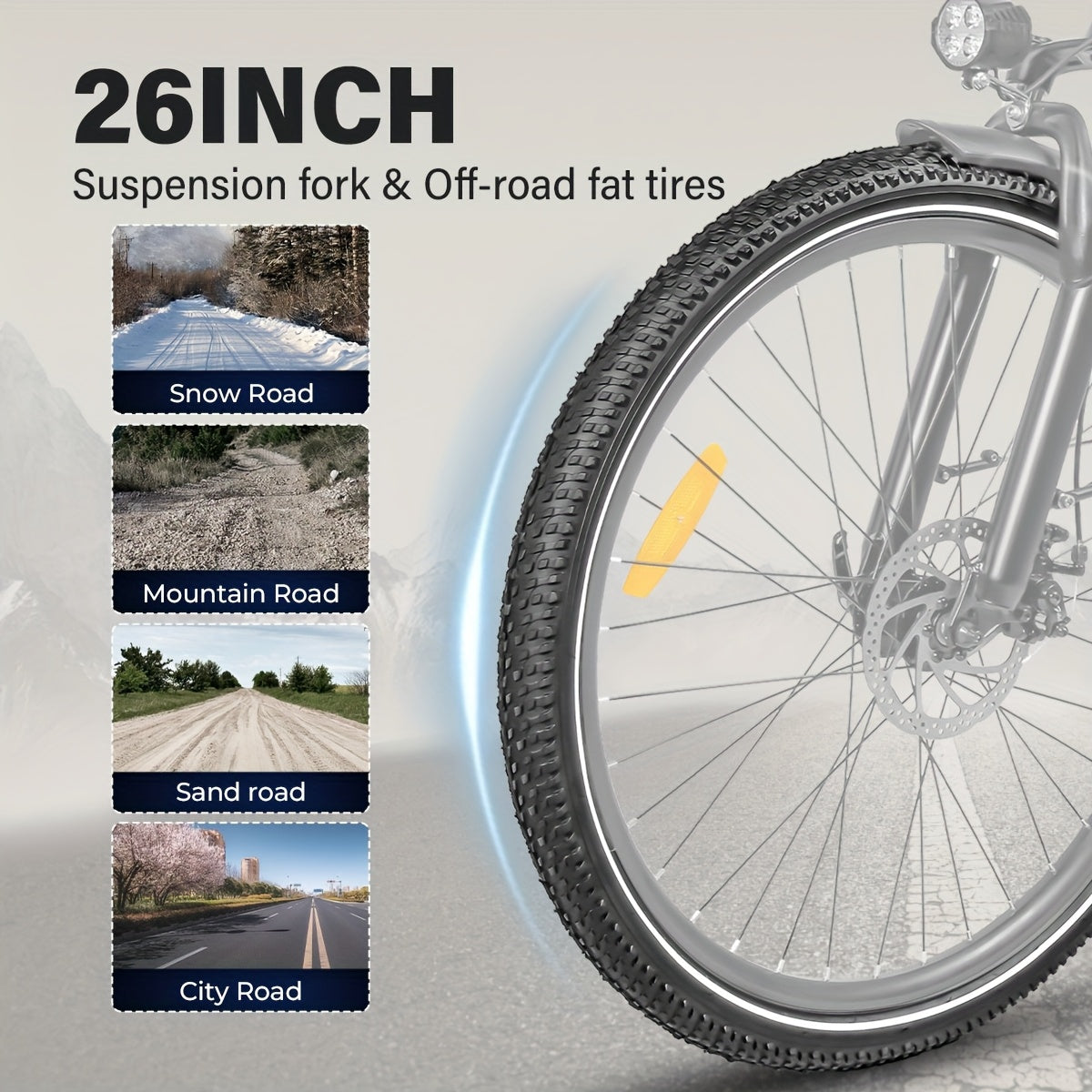Folding Electric Bike | 26x3.0-inch Durable Tires | 48V13AH Removable Battery | 250W Motor | Disc Brakes | LCD Smart Meter | 100-110km Power-Assisted Range, Mountain Bike, Adult Bike, Cycling Assistant, Urban Commuting, Mode
