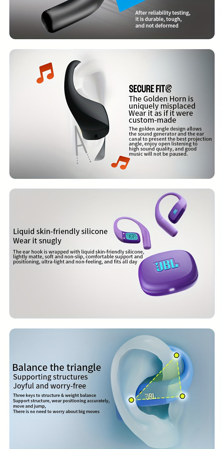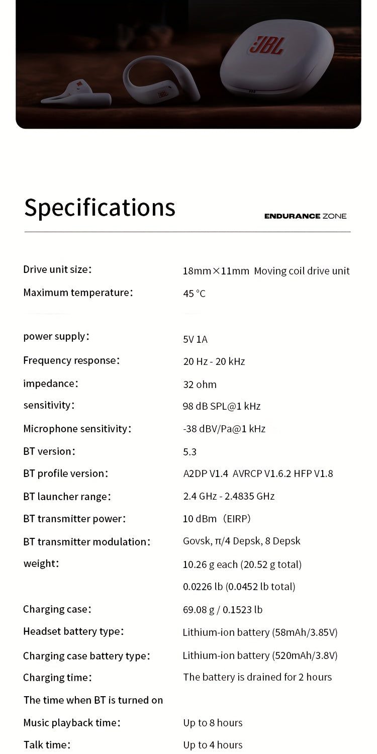For JBL ZONE True Wireless Open-Ear Sports Headphones, Neckband Wireless Earbuds for Swimming, Cycling, Running, Long Battery Life, High-Quality Sound, Clear Call and Music Output, USB-C Charging, Rechargeable Battery, Black