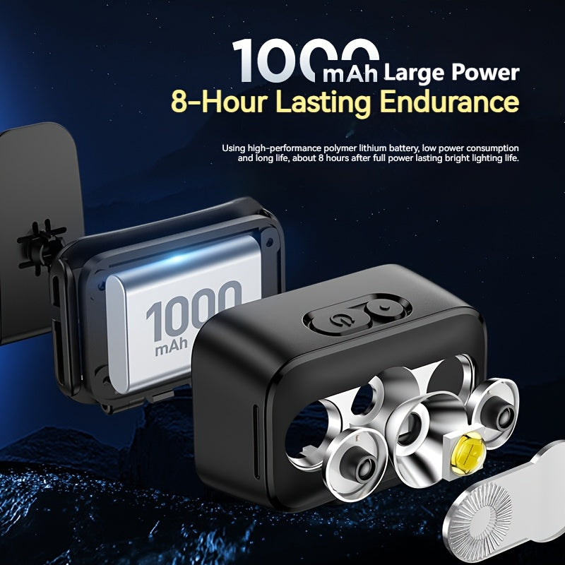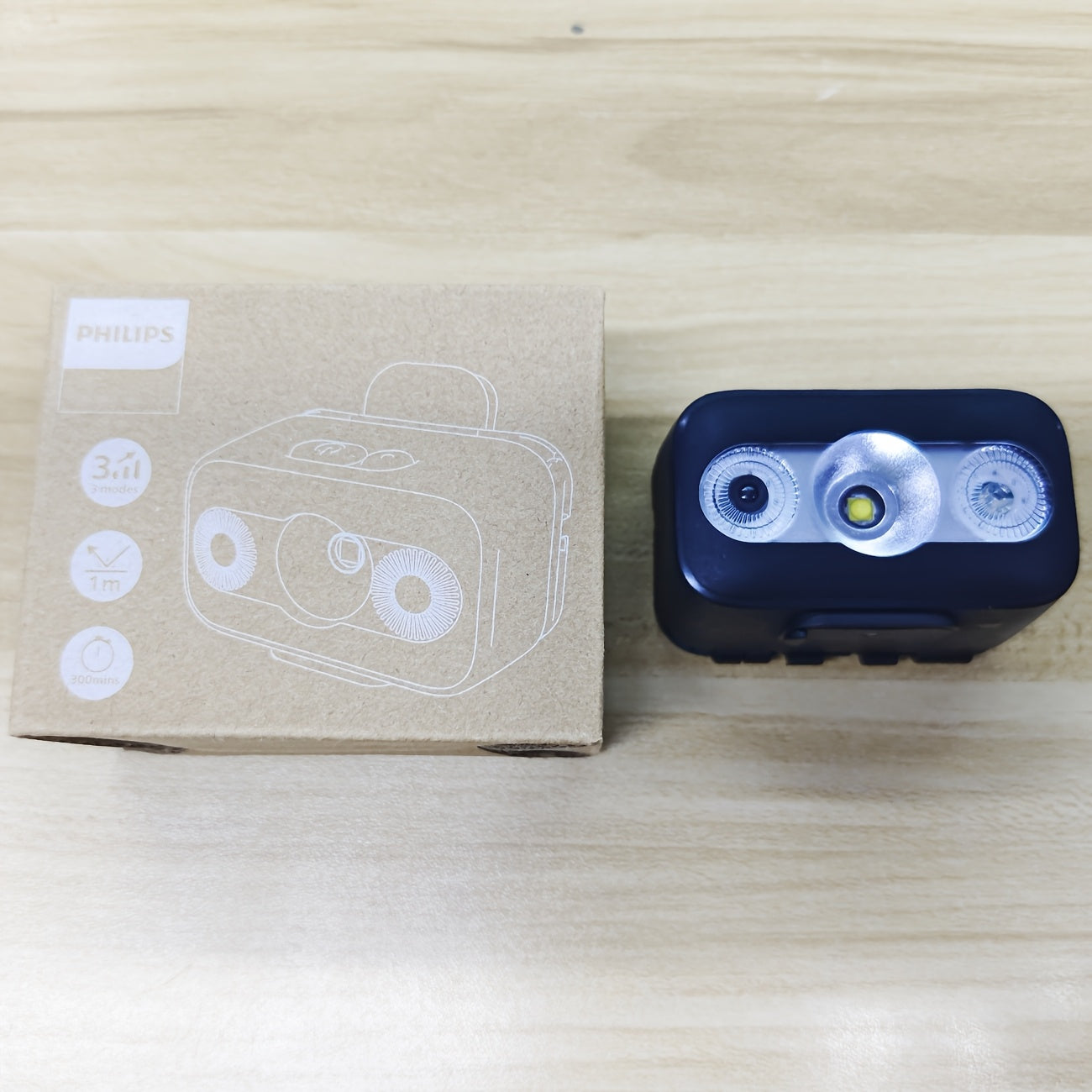 For PHILIPS Bionic Design Night King LED Headlamp with Intelligent Infrared Sensing, 10 Lighting Modes, USB Rechargeable, Red & Blue Warning Light, Clip-On for Camping, Fishing, Hiking, Work, and Outdoor Activities, Hiking Ge