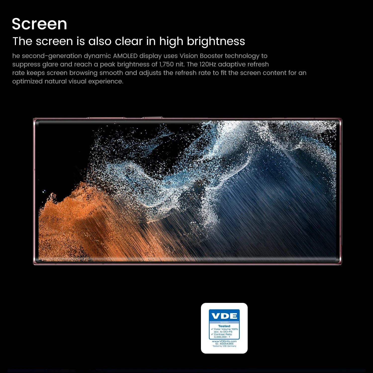 92%screen-to-body ratio on a 7.2-inch Water Drop FULL screen Front CameraClear and Stylish Selfies S22 Ultra world-leading 8MP