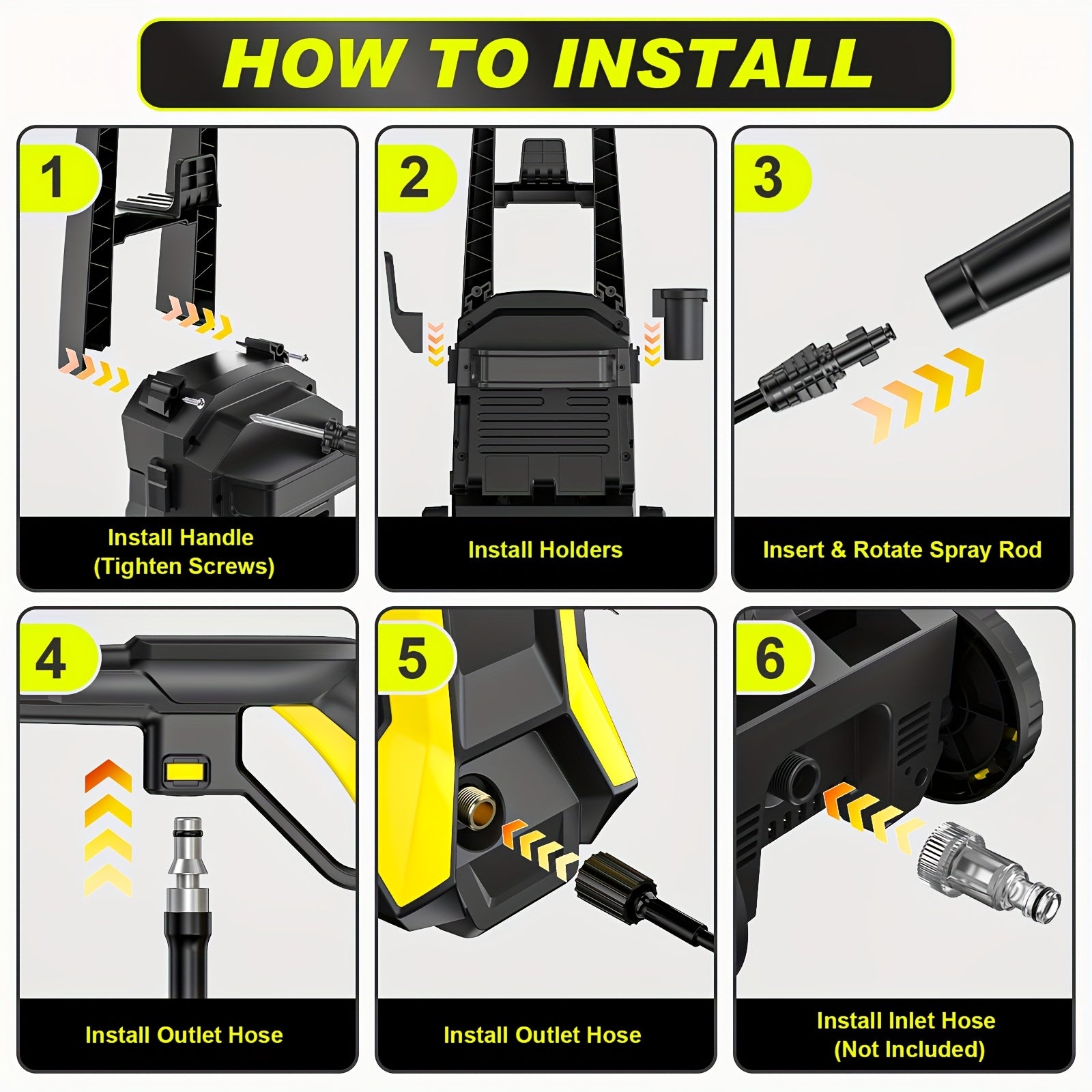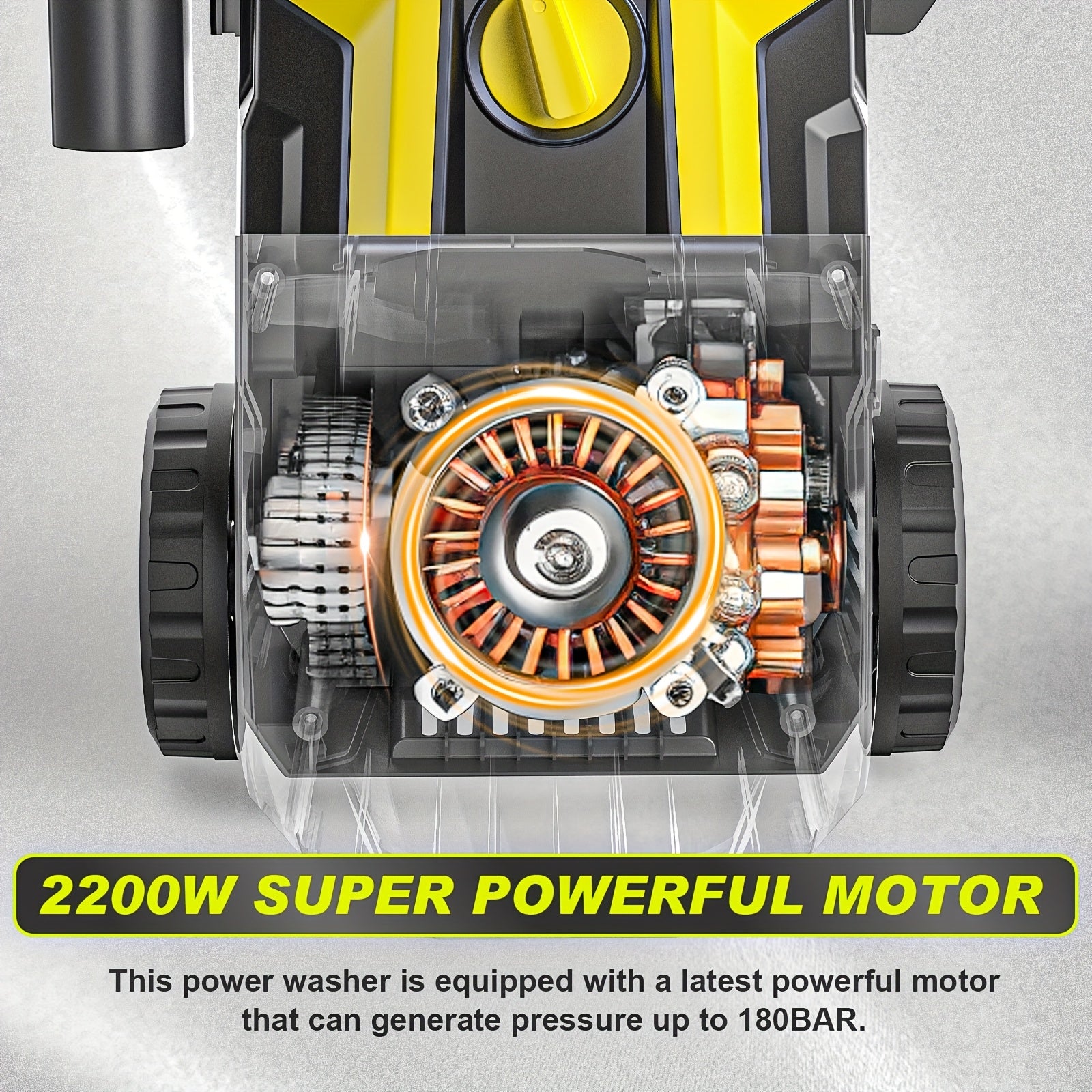 Gisam High-Pressure Washer 2200W 180Bar 480L/H with 8m Hose, Soap Bottle, Foam Nozzle & Lance Gun IPX5 Suitable for Cars/Fences/Gardens/Patios Yellow