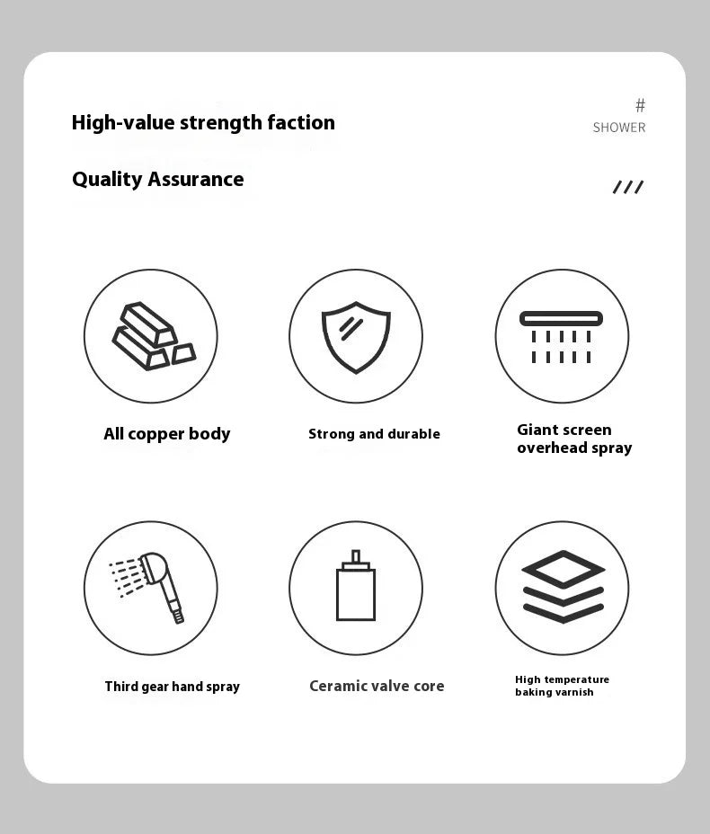 Gun Grey All-Copper Household Bathroom Shower Set Simple Design Ceramic Metered Faucets Chrome Shower Booster