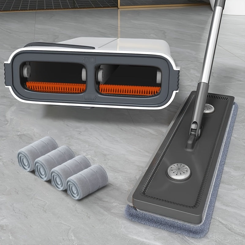 Hands-Free Flat Mop And Bucket Set with 4pcs Mop Pad- Dual-Purpose Dry And Wet Cleaning, Ideal for Bedroom, Kitchen, Living Room, Bathroom - Durable Plastic, for Household And Floor Cleaning, Tile Marble Floor Cleaning Mop Cl