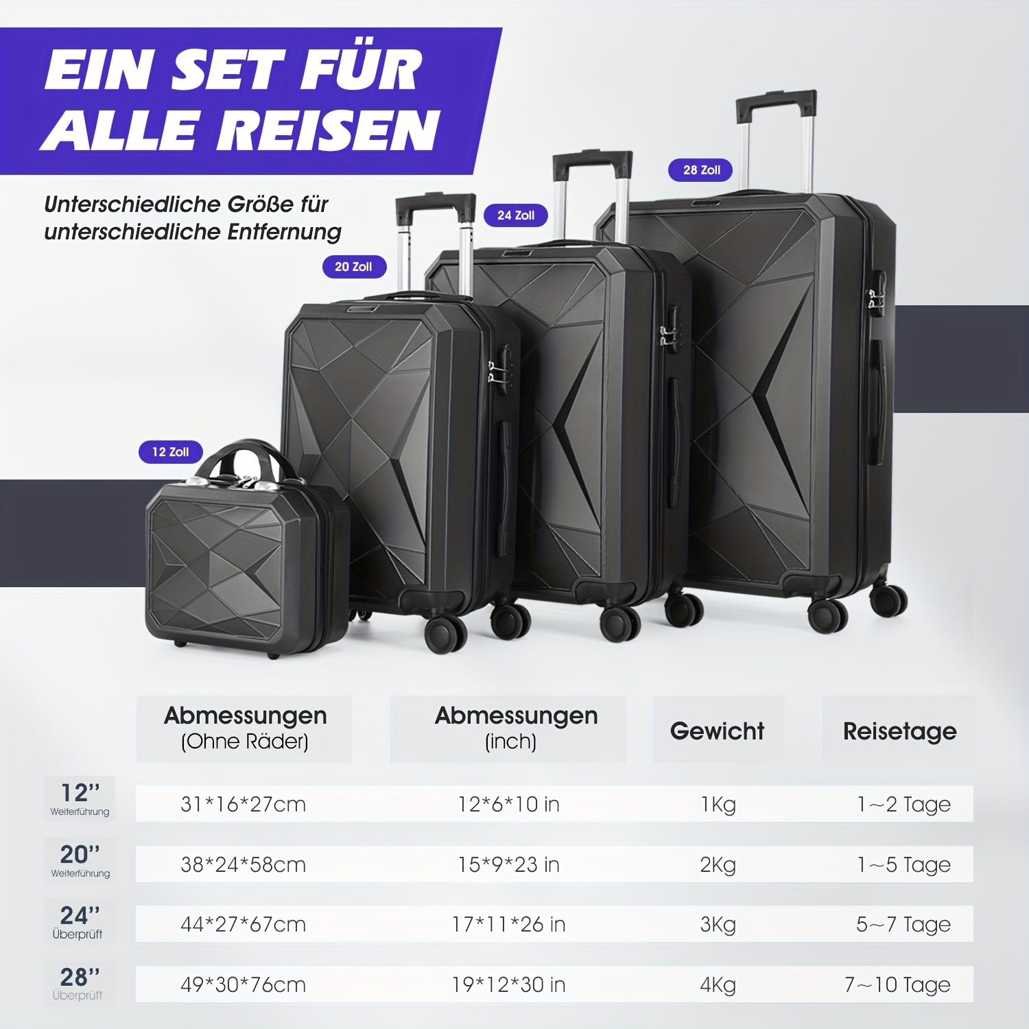 Hardshell Luggage Set Of 4pcs, With 360° Dual Spinner Wheels And Integrated Lock, Carry-on Luggage