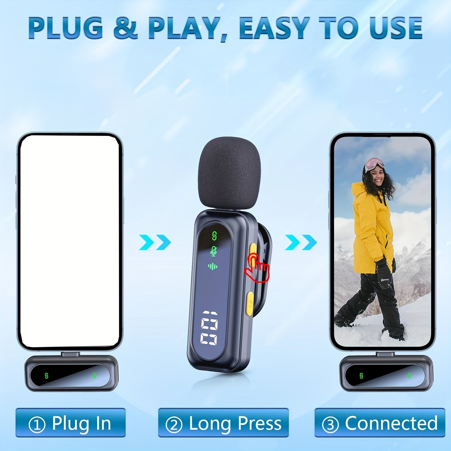 HITOZON Professional Wireless Lavalier Microphone with LED Power Display, Plug & Play, USB-C, Rechargeable Battery, Ideal for Content Creators, Live Streaming, Podcasting - Sleek Black Design with Fluffy Pom-Pom, Wireless Mic