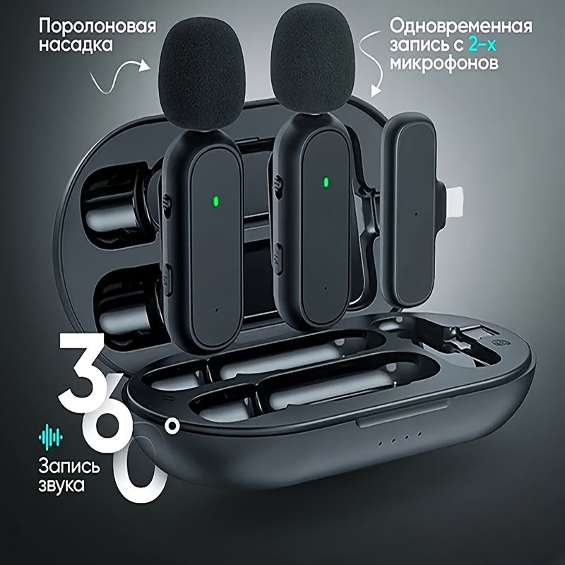 Melhore a qualidade das suas gravações e transmissões com o conjunto de 2 microfones de lapela sem fios, ideal para smartphones Android, iPhone e iPad.