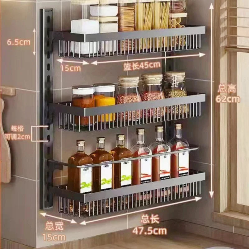 3-layer Kitchen spice rack Organizer Hanging Spice Storage Rack Multi-tier Wall Mounted kitchen container organizer