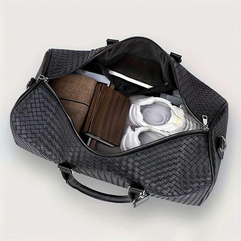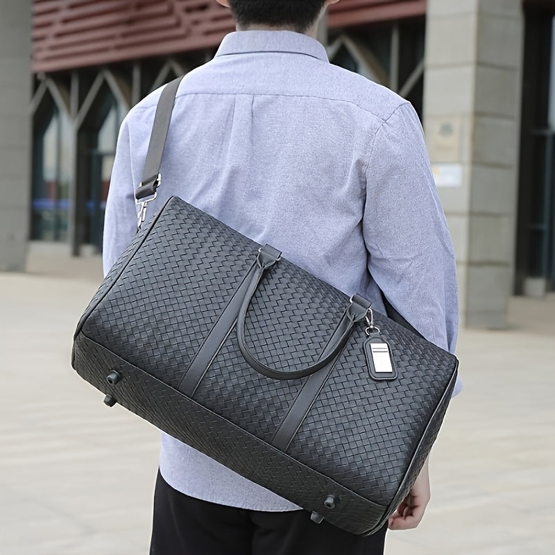 Large Capacity Gym Bag, Travel Duffel, Suitcase - Convertible Carry-On/Luggage with Zippered Front Pocket, Sturdy Handles - Compatible with TSA Locks - Business & Fitness Use - Elegant Black Synthetic -like Exterior - Easy-Cl