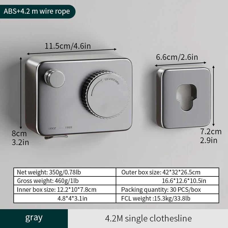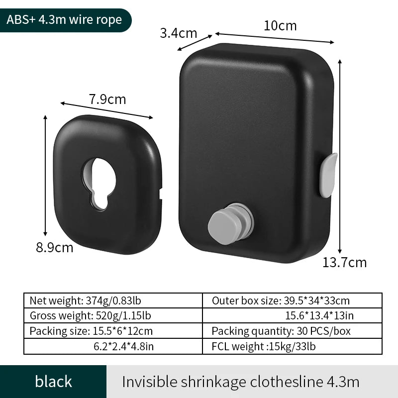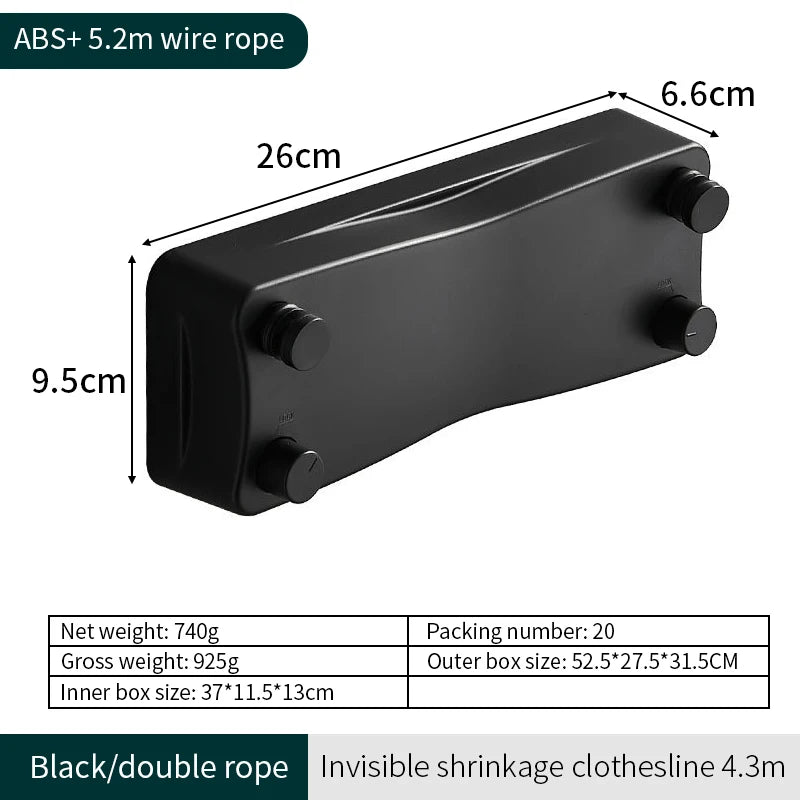 Durable Material】- The retractable clothesline's body made of premium ABS case + aluminum base and the rope used 304