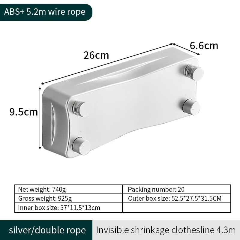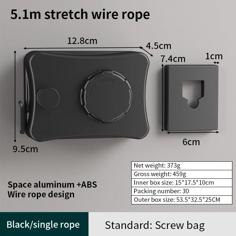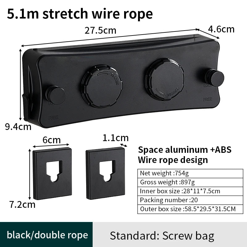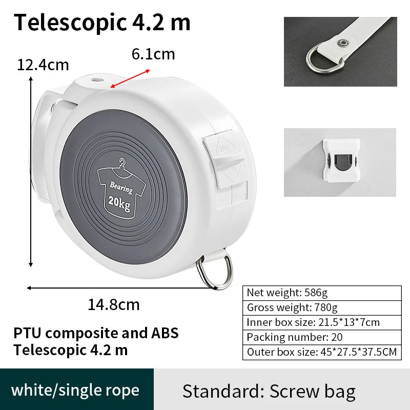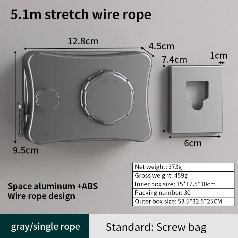 The retractable clothesline is an innovative household drying tool that perfectly solves the problem of insufficient space through its retractable design. It is made of high-strength materials, combining durability and convenience. It is an ideal choice for modern family balconies, bathrooms, camping or temporary drying.