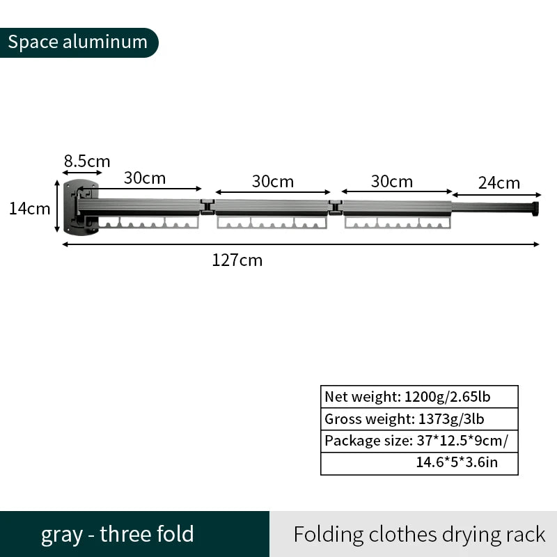 This wall-mounted three-fold clothes rack provides the perfect blend of form and function. Whether you're drying clothes, airing towels, or organizing outdoor gear, its space-saving,foldable design ensures you always have the right amount of drying space exactly when you need it.