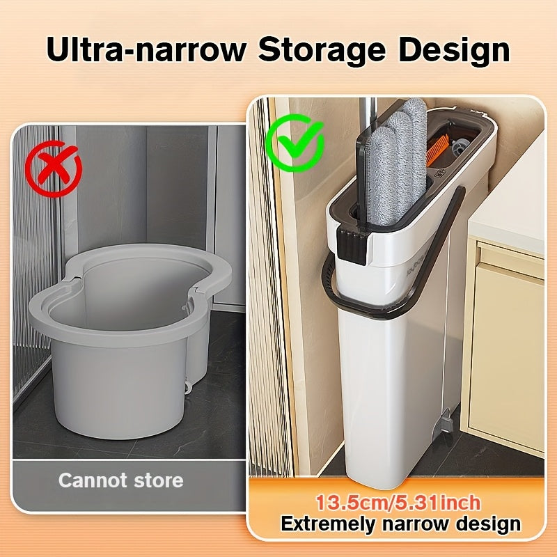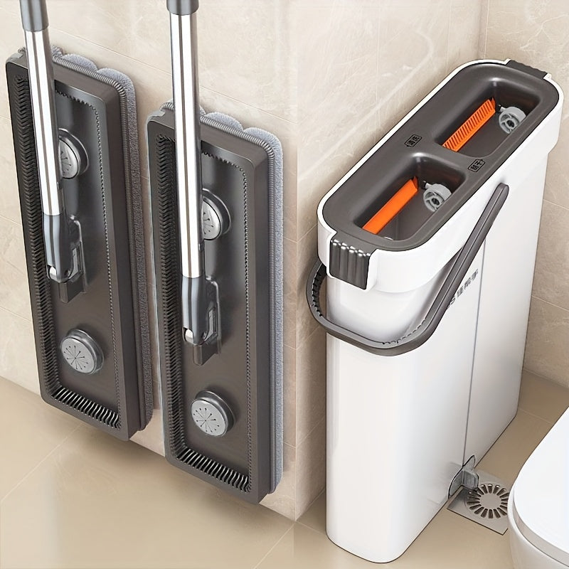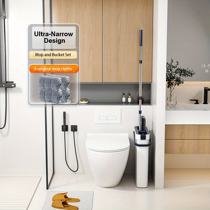 Lazy Hands-Free Flat Mop And Bucket Set with 4pcs Mop Pad- Dual-Purpose Dry And Wet Cleaning, Ideal for Bedroom, Kitchen, Living Room, Bathroom - Durable Plastic, for Household And Floor Cleaning, Tile Marble Floor Cleaning M