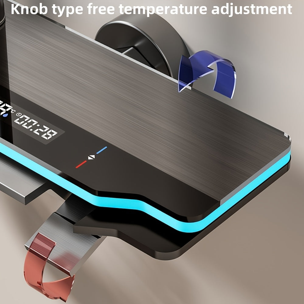 Luxury Gun Gray Shower Head Set, Piano Key Ambient Light, High Pressure Rainfall System, 4-in-1 Bathroom Accessories Kit, Digital Shower Head, Ideal Gift for Home Bathroom Decor, Perfect for Easter and Ramadan