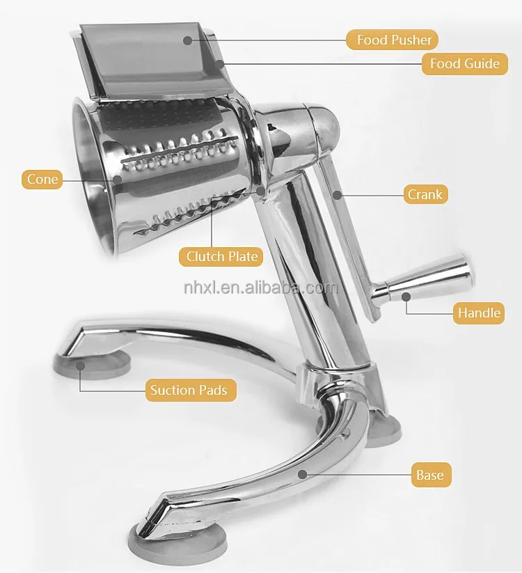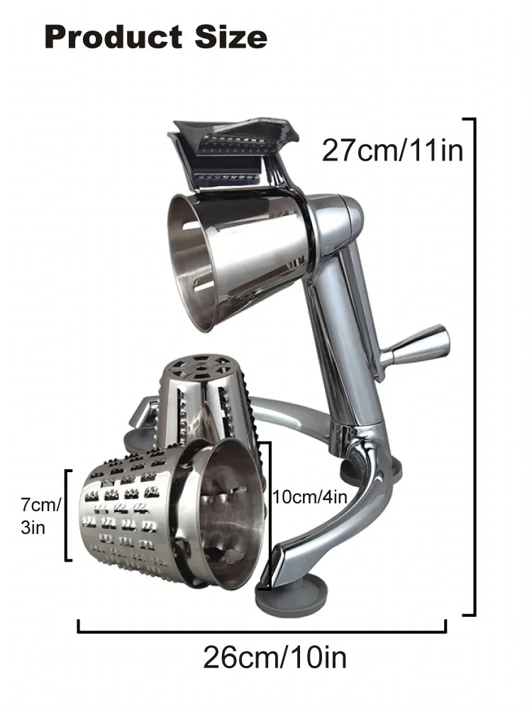 This innovative zinc alloy kitchen gadget features interchangeable cutting cups, allowing it to serve as a cheese grater, vegetable shredder, and more.