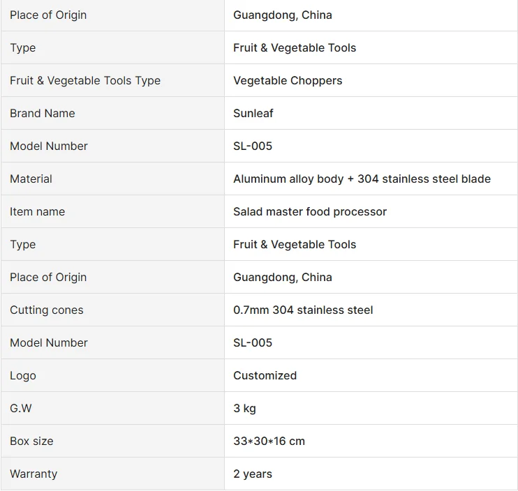 It can easily switch out different cups for cutting fruits and vegetables, functioning as a vegetable chopper and a multi-vegetable cutter. From 2010 to 2024, Sunleaf has continuously improved and refined the design, launching six new models, including a kitchen vegetable slicer, veggie dicer, and fruit chopper.
