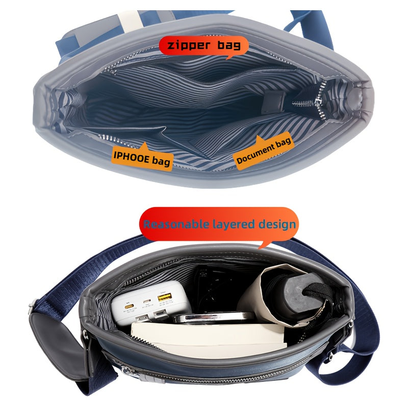 Men's Crossbody Laptop Bag with Tablet Pocket - Heavy-Duty Convertible Messenger Bag, Adjustable Strap & Zippered Compartments, Golden-Tone Hardware - Compatible with 38.1cm Laptop/ Tablet - Navy Blue for Travel, Work, School