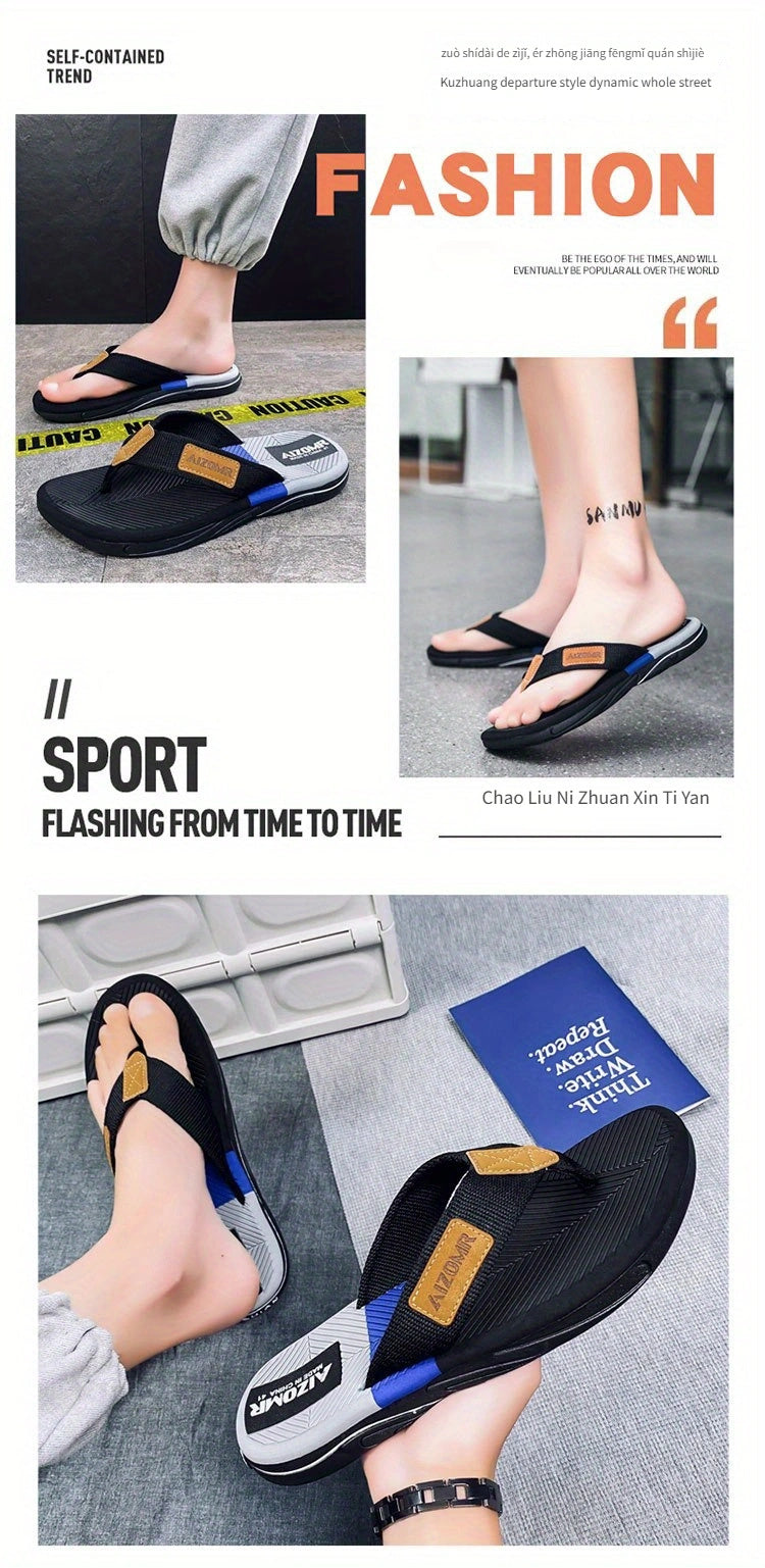 Men's Non-Slip EVA Slip-Resistant Flip-Flops - Heavy-Duty Ergonomic Arch & -Odor Technology, Green/Golden/Grey/Grip Tread Beach Sandals with Ergonomic Arch, Lightweight & Durable for Swimming, Walking, Pool - Multi-Color Opti