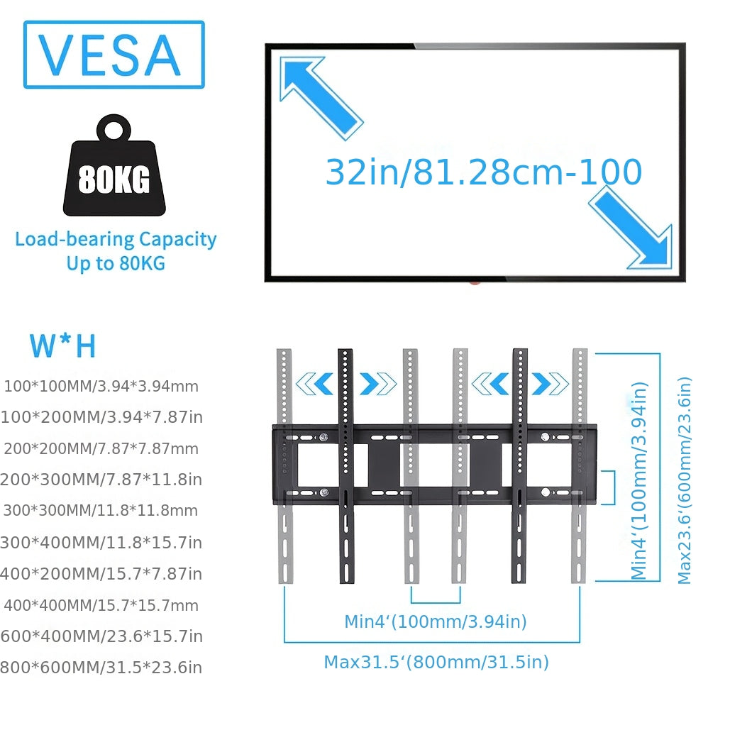 Mobile TV Stand,Rolling TVs Cart on Wheels Height Adjustable Heavy-Duty Floor Stand Base for 81.28-254.0 cm LCD LED OLED Flat Panel Screens Movable Holds up to 79.83 KG with Shelf, Portable Tv Stand, Tv Unit for Living Room,