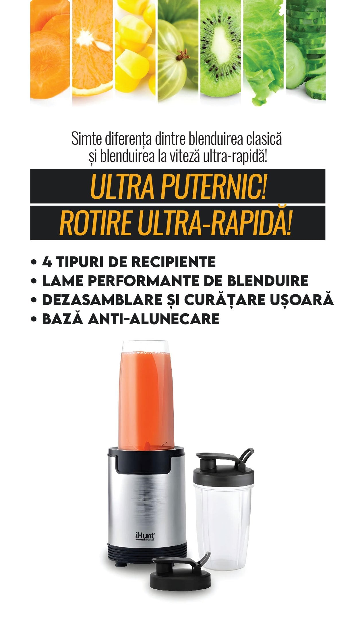 Multi Blender iHunt Bro 4-in-1 Set, 900W Power, 18000 RPM, 1L Capacity, 6 Blades, Fruit Grinding, Smoothie Maker, Ice Crushing, 7 Accessories Included