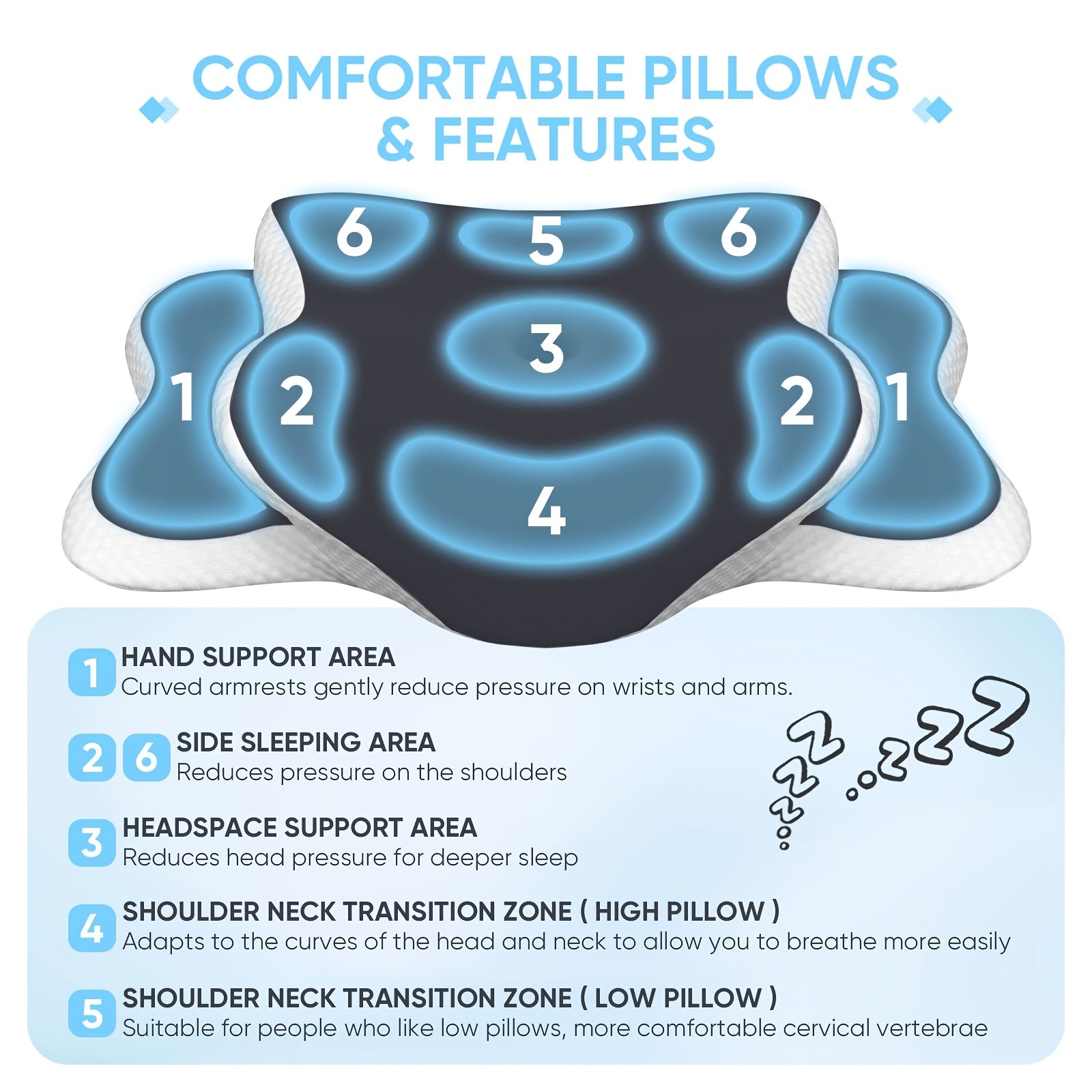 Neck Pillow for Sleep, Cooling Side Sleeping Pillow for Neck Support, Comfortable Soft Contour Pillow, Back Abdomen Sleeping Bed Pillow