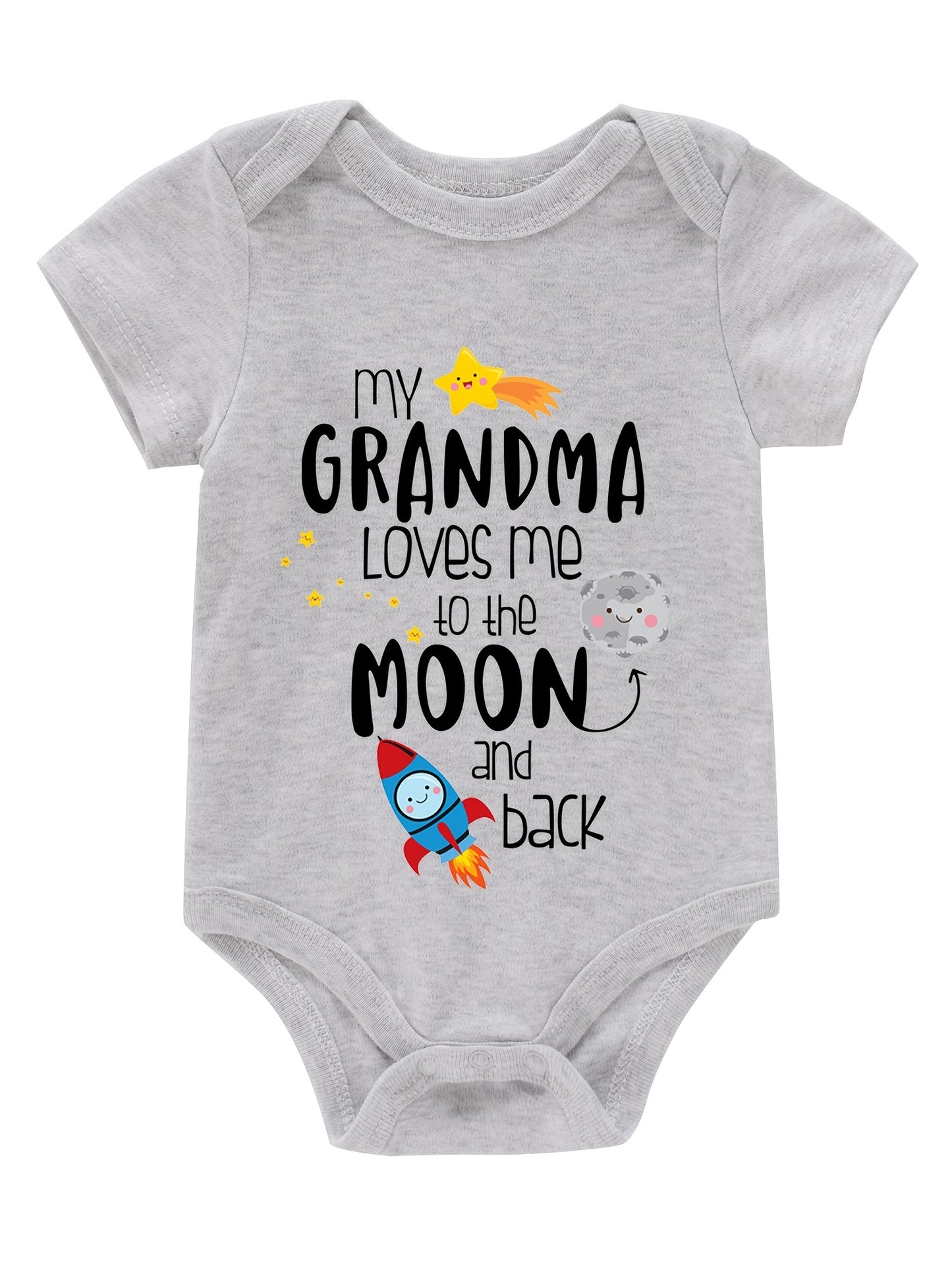 Newborn Infant Short Sleeve Romper "My Gramdma" Print Bodysuit Onesies For Baby Girls And Boys, Suitable For Indoor And Outdoor Wear