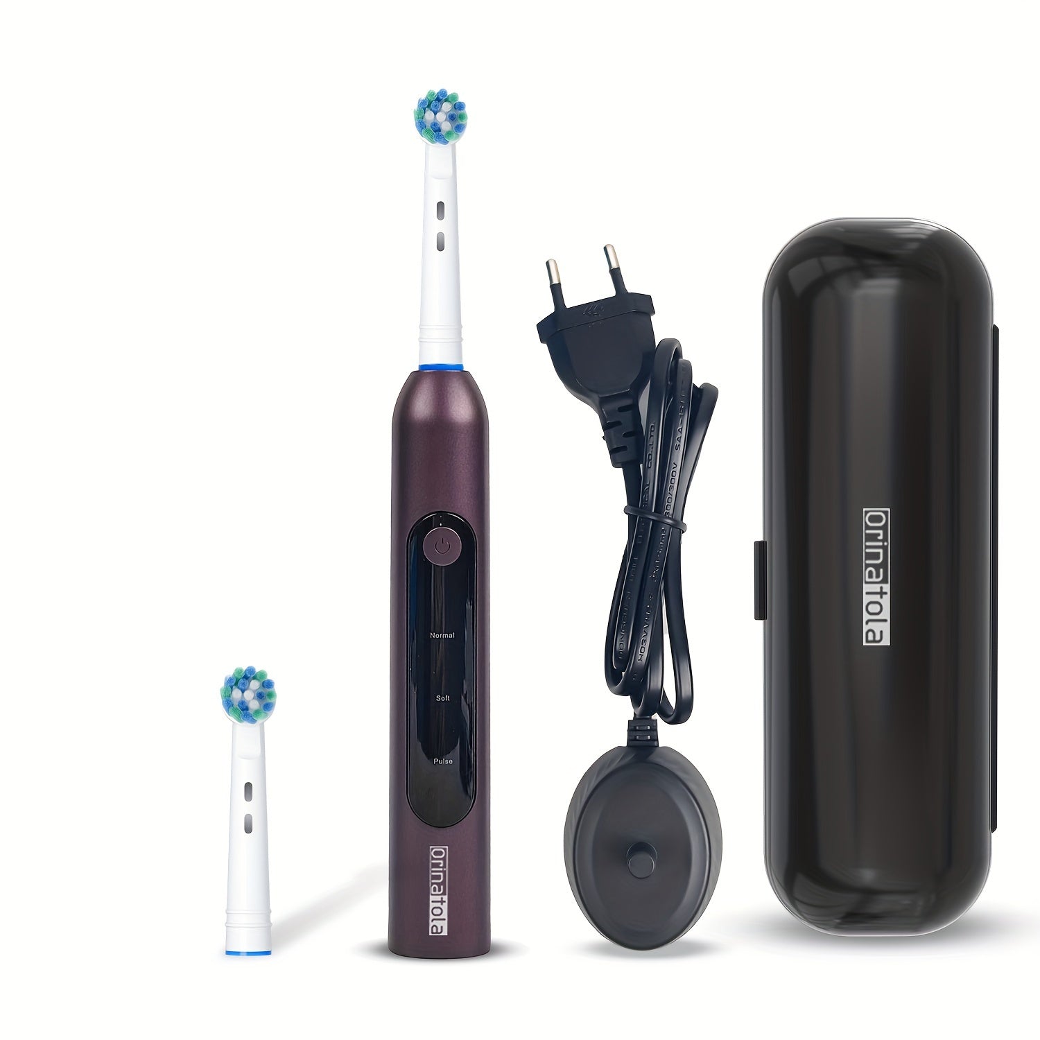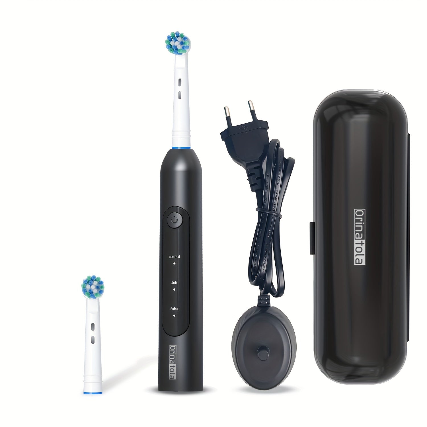 Orinatola Electric Toothbrush, Featuring 3 Rotating Cleaning Modes, 1 Travel Case, 2 Replacement Brush Heads, Induction Charging, Rating, Perfect As a Holiday Gift.
