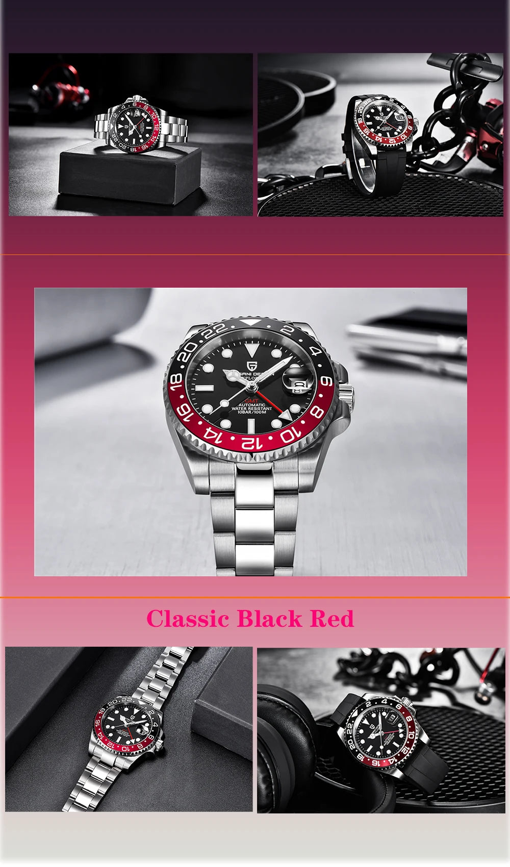 PAGANI DESIGN New GMT Men's Watch Luxury Sapphire Automatic Mechanical Watch 40MM Stainless Steel 100M Waterproof Watch