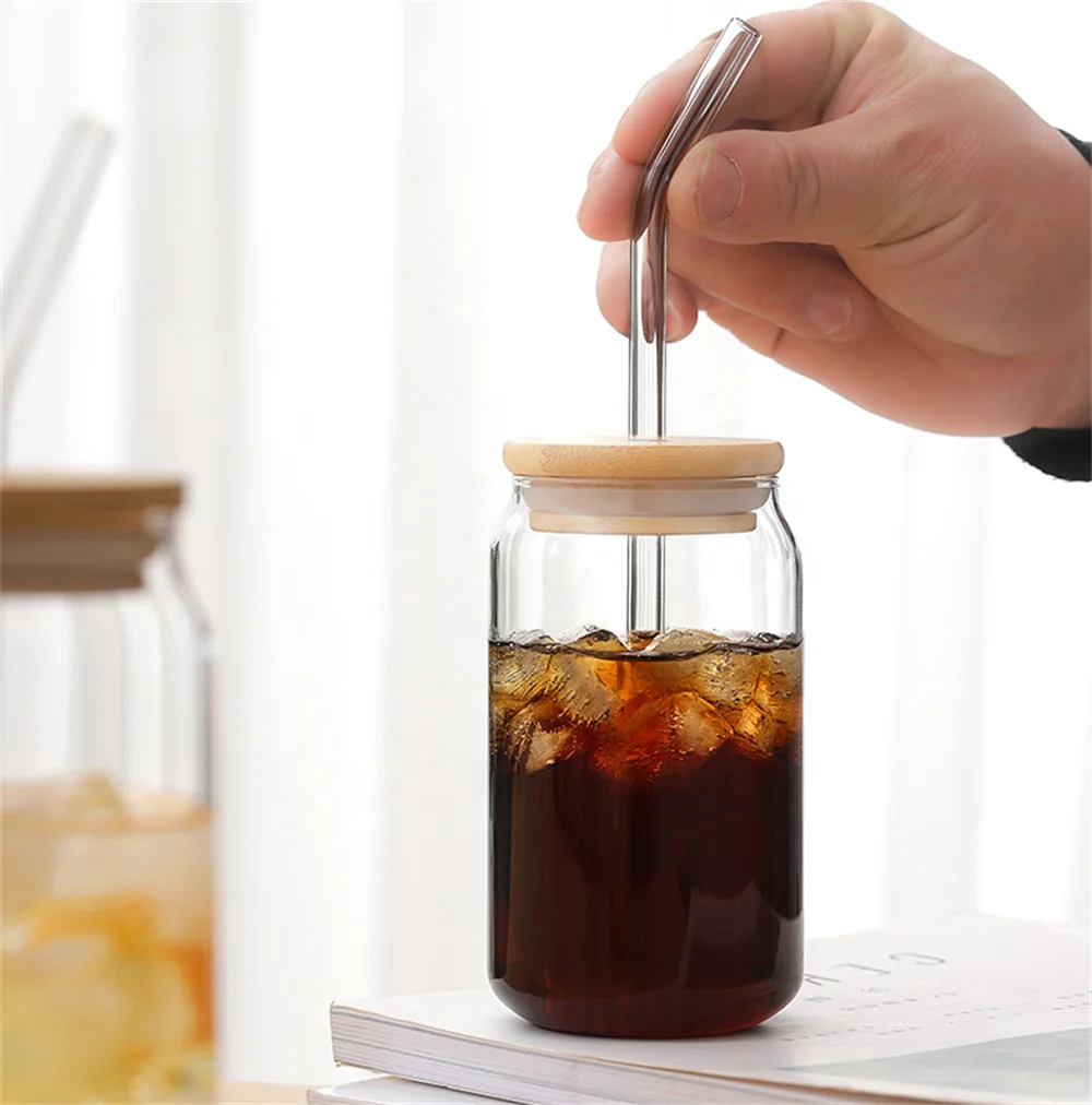 Personalized 12oz 16oz Frosted Beer Can Glass Tumbler Clear Mason Jar Glass Mug with Bamboo Lid Glass Straw for Business Gifts