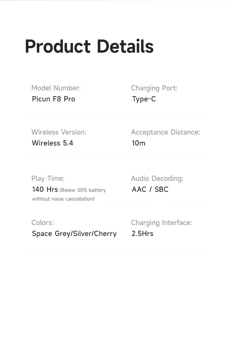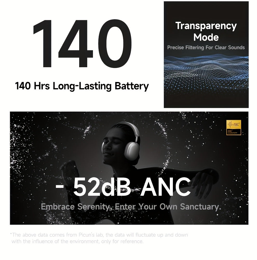 PICUN Wireless Headphones with Dynamic Head Tracking, -52dB ANC Noise Cancellation, 140Hrs Battery Life, Wireless 5.4, Wired/Wireless Switch, Double Connection & Multi-Mode Audio, Closed-back Design, Plastic Material, Compati