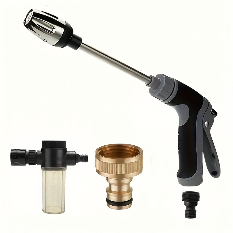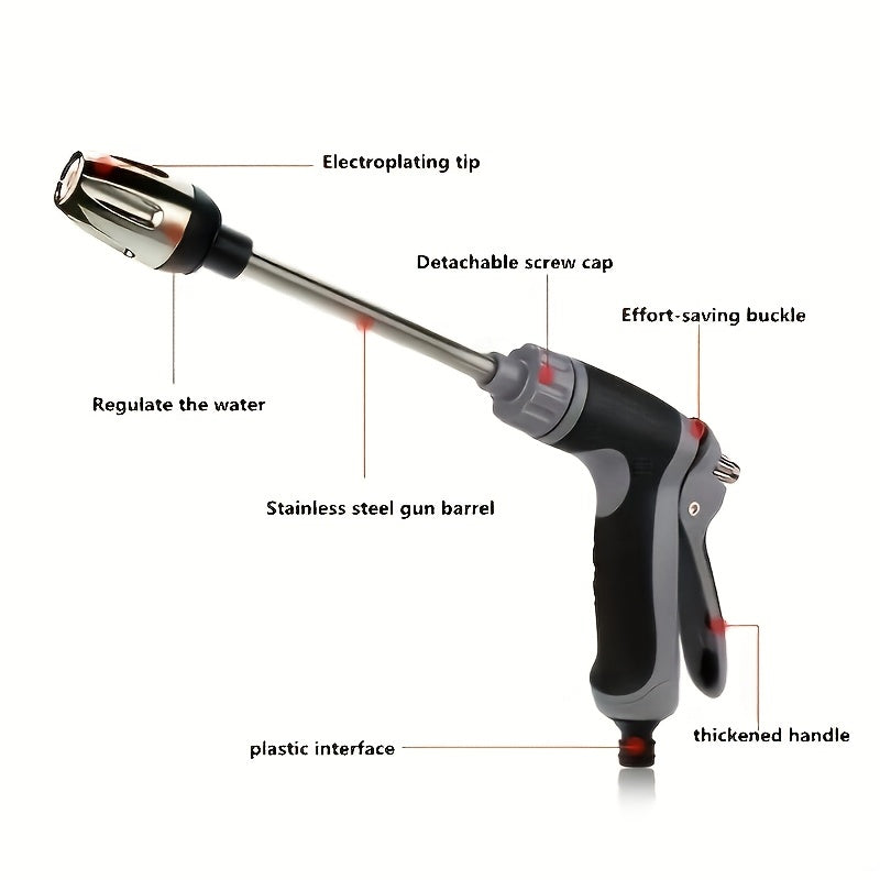 Fabricada com materiais duráveis e equipada com cabo longo, permite alcançar facilmente áreas de difícil acesso. Compatível com mangueiras de jardim padrão, oferece alta pressão e pulverização eficiente, garantindo uma limpeza rápida e eficaz.
