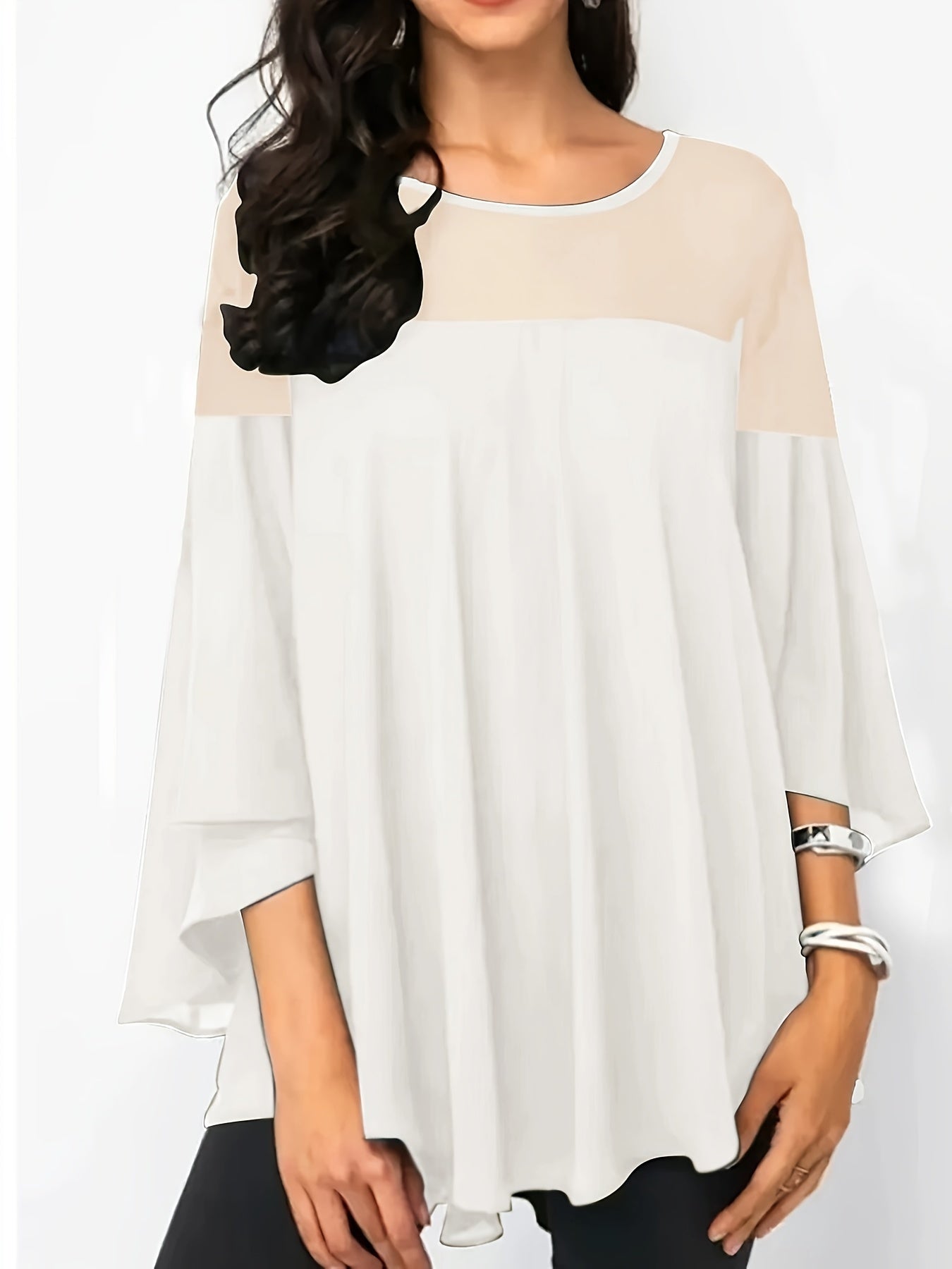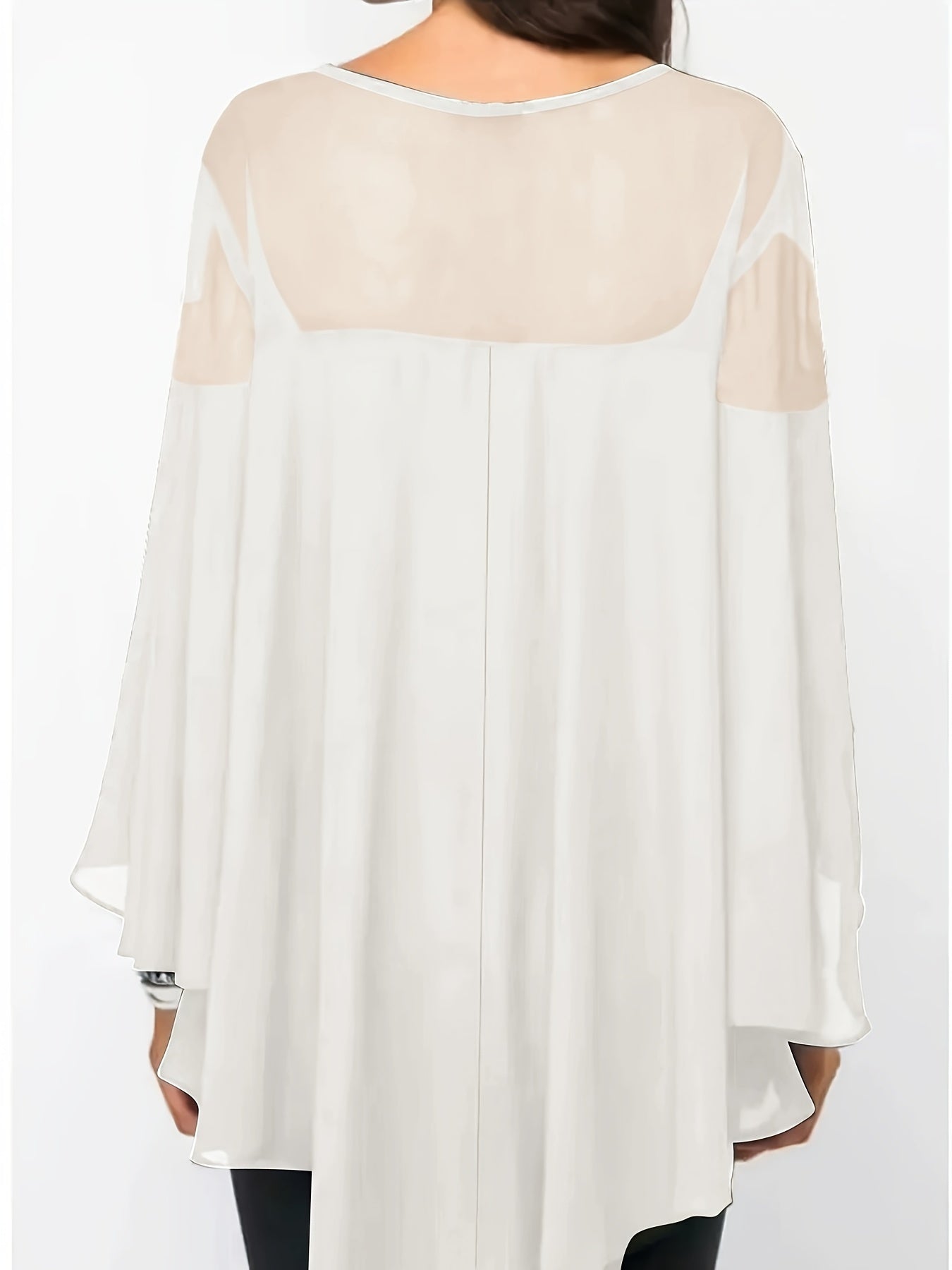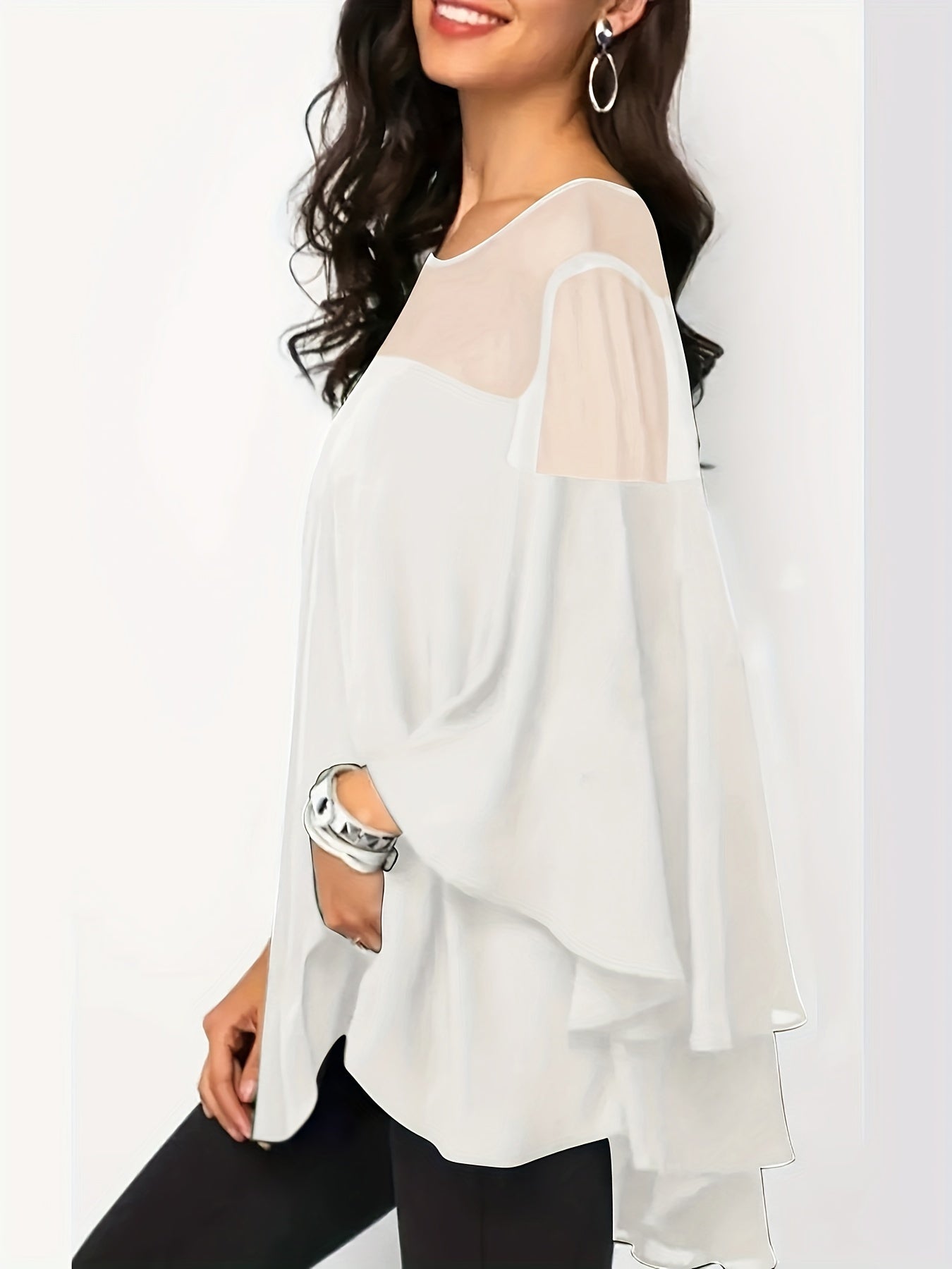 Plus Size Asymmetrical Hem Blouse, Casual Solid Crew Neck Blouse For Spring, Women's Plus Size Clothing