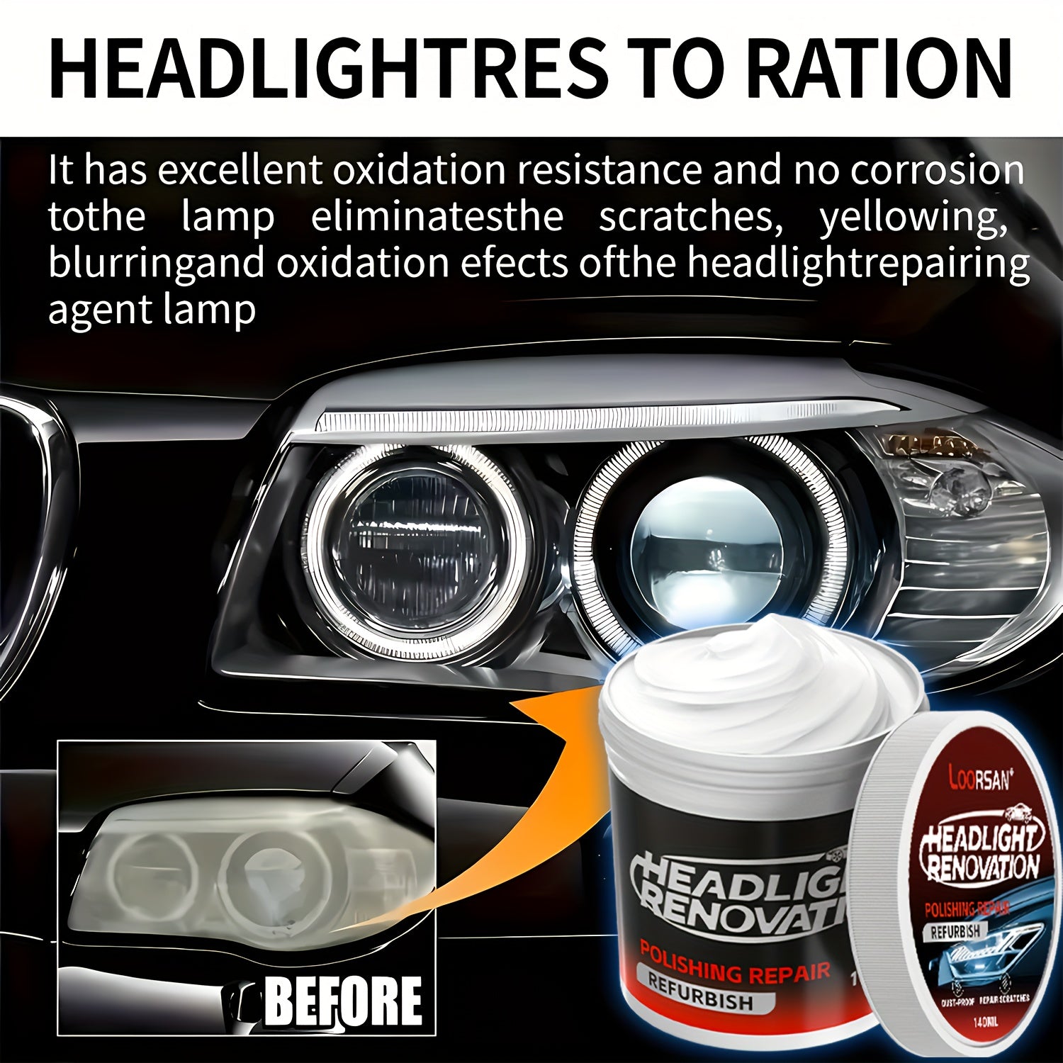 Premium Car Headlight Restoration Kit – Fixes Yellowing, Haze, Oxidation & Scratches for Safer Driving