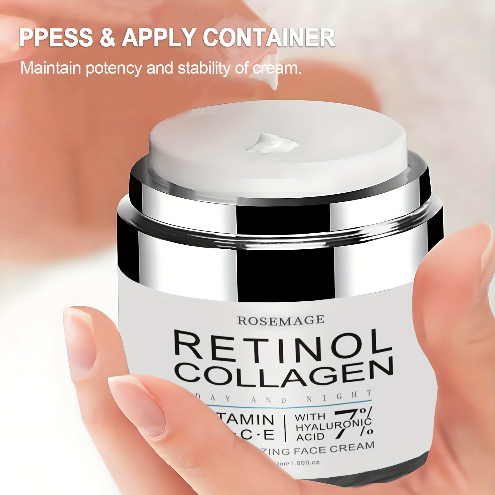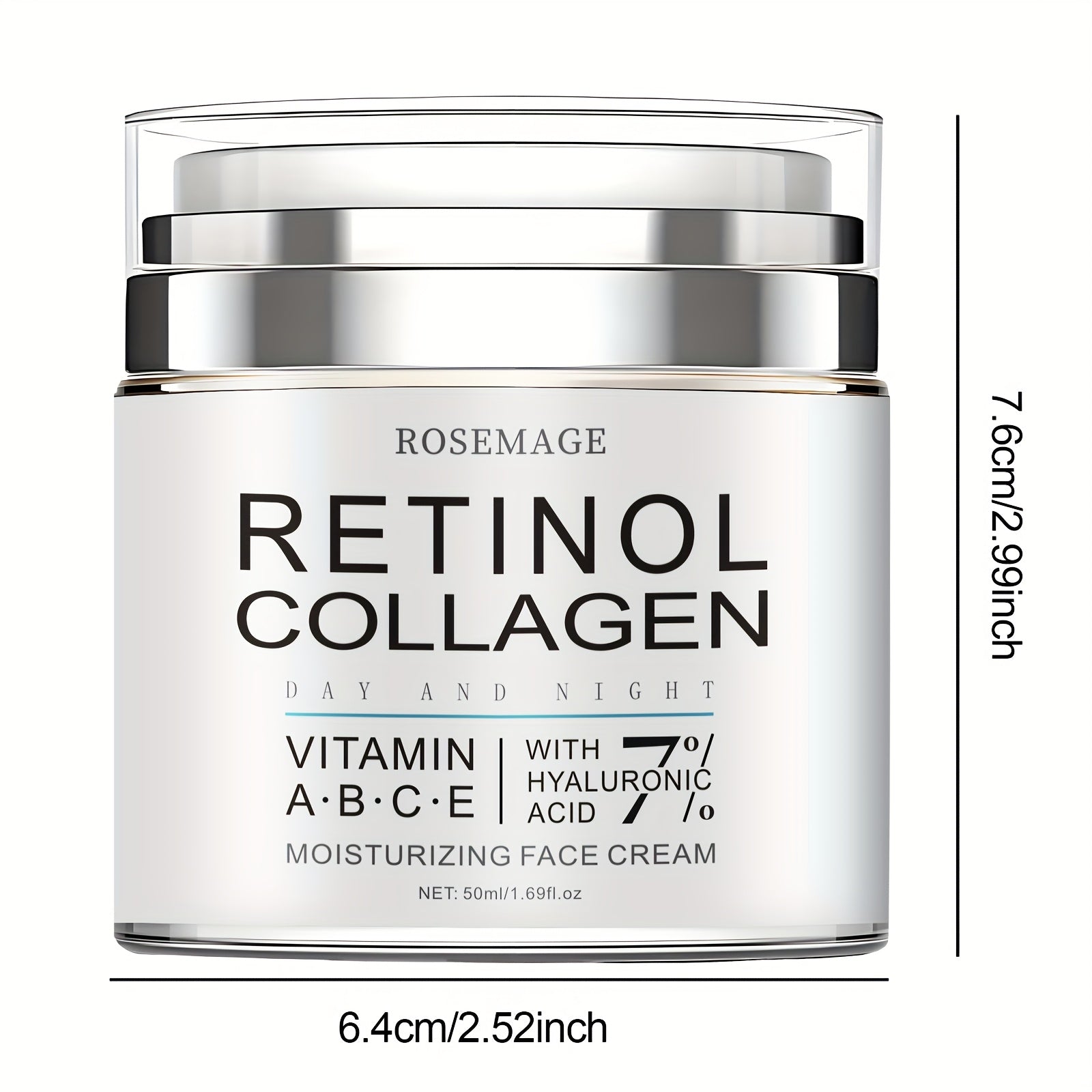 Retinol Collagen Cream, Intensive Moisturizing Firming Face Cream for Sensitive Light Beige, Day and Night Use, Enriched with Vitamins A, B, C, and E, Hyaluronic Acid to Brighten Complexion, Smooth and Radiant Finish, 50ml/1.
