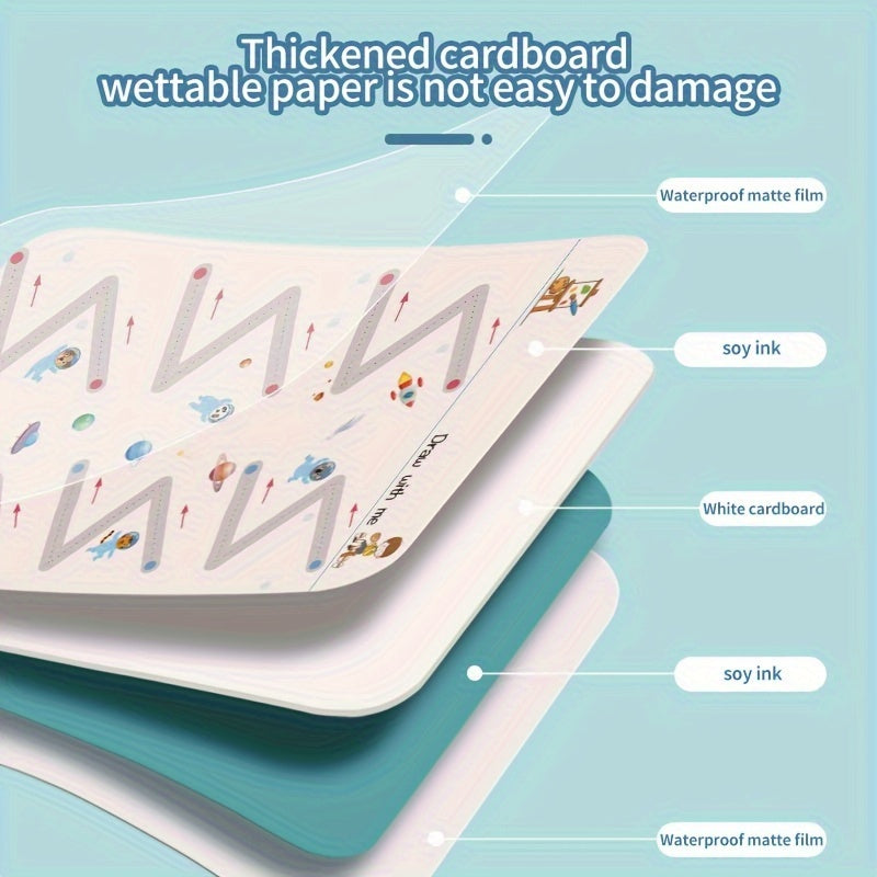 Reusable Handwriting Practice Book for Kids Ages 3-6 - 128 Pages with Letters, Numbers & Sensory Feedback Lines | Dry Erase Magic Copybook | Preschool & Kindergarten Learning, Colorful Illustrations, Durable Paper, Interactiv