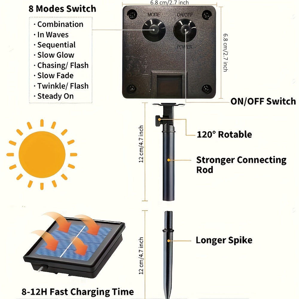 Solar LED Light Path Deck Outdoor Garden Solar String Lights Solar Rope Lights Outdoor Lighting strips Led Garland Lights For Wedding Party Christmas Halloween Decoration Garden Stair with Smart Light sensor 8 Light Modes